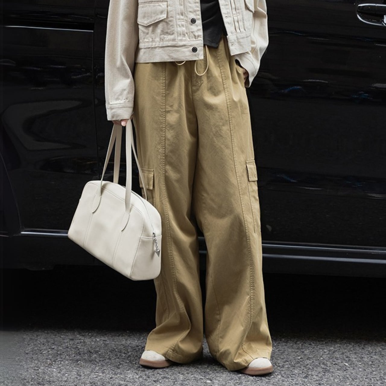 シンプルでスタイリッシュなデザインが魅力的なカーゴパンツ。
