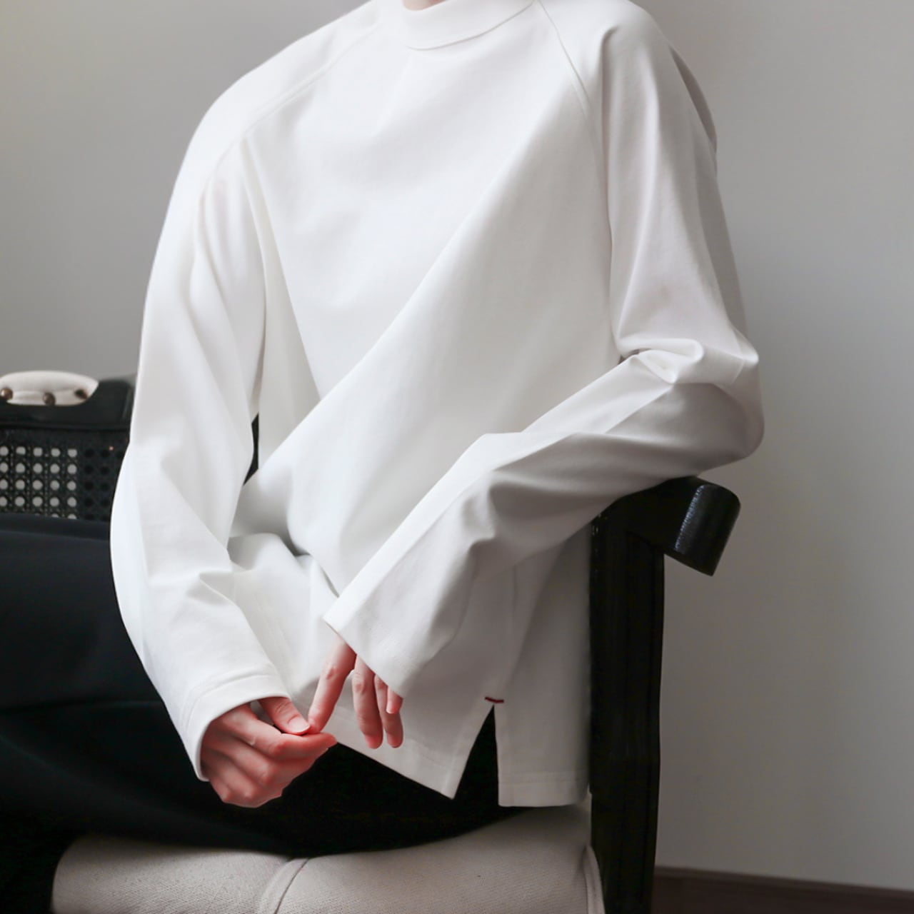 “ユニセックスなシンプルデザインが魅力的なラグランスリーブのロングTシャツ。赤いステッチがポイントのサイドスリットでさりげなく個性を演出◎リラクシーなワイドパンツやすっきりとしたロングスカートを合わせると、大人女性の魅力引き立つ上品な着こなしに◎”