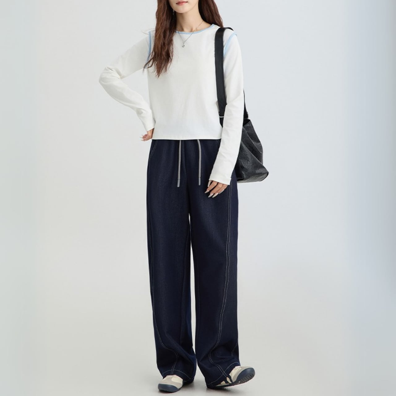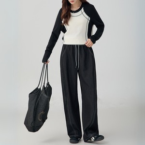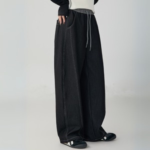 コントラストステッチドローストリングデニムパンツ A01375