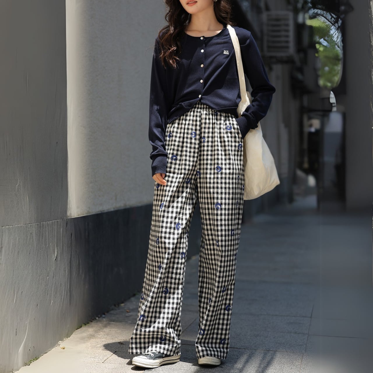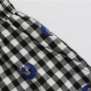 “モノトーンのチェック柄と月と星をモチーフにした模様が珍しいイージーパンツ。カジュアルな雰囲気の中に個性があり、コーディネートにさりげないアクセントをプラスしてくれる1枚です。きちんと感のあるシャツや綺麗めニットなど、上品なアイテムと相性抜群◎ラフになりすぎない大人カジュアルコーデを楽しめます。”