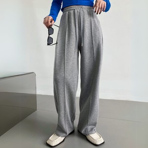 ラフなのに上品見え!センタープレスと程よいシルエットが下半身のラインをすっきり見せてくれる、ドローストリングスウェットパンツ。カジュアルでありながらもきちんと感が備わっているので、お出かけ着にぴったりの1枚です。華やかなカラーアイテムを合わせると、ワンランク上のスタイリッシュな着こなしに◎