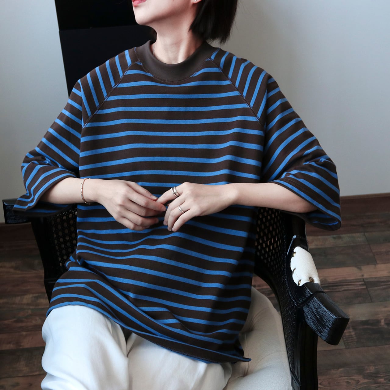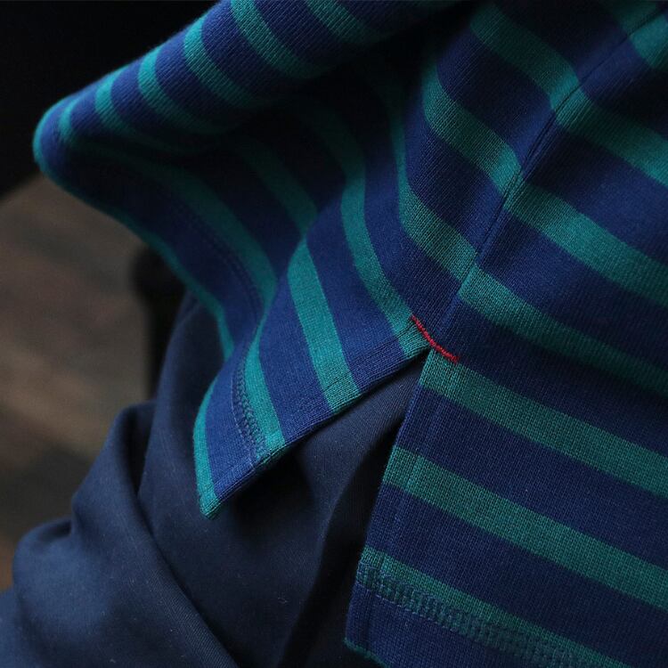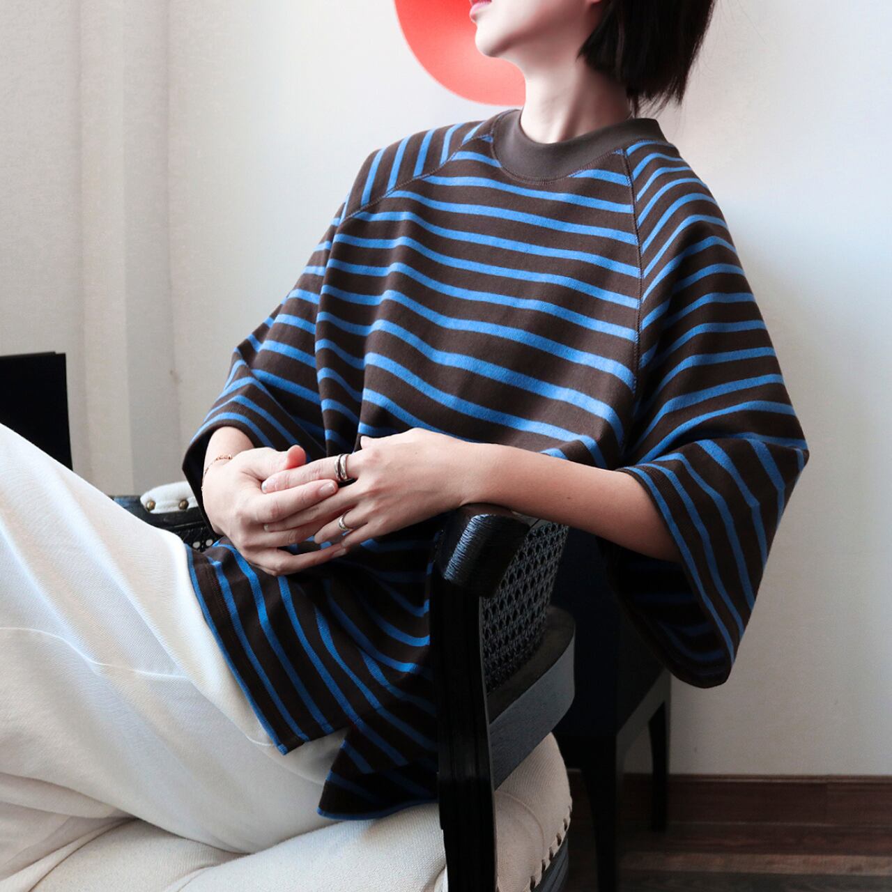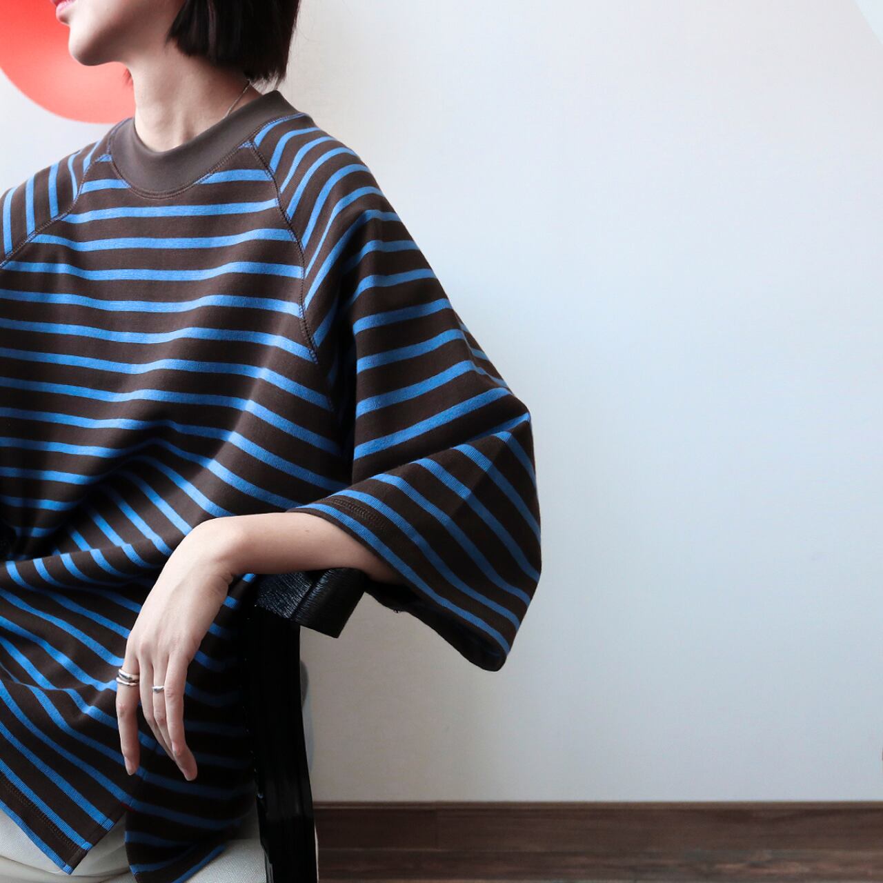 配色センスが光るツートーンボーダーにラグランスリーブを合わせた、こなれTシャツ。