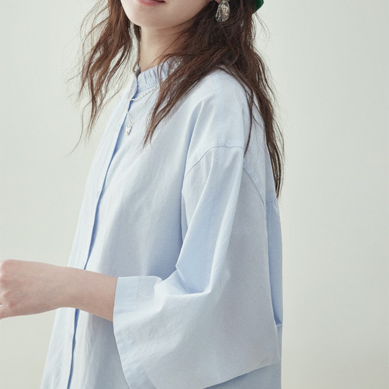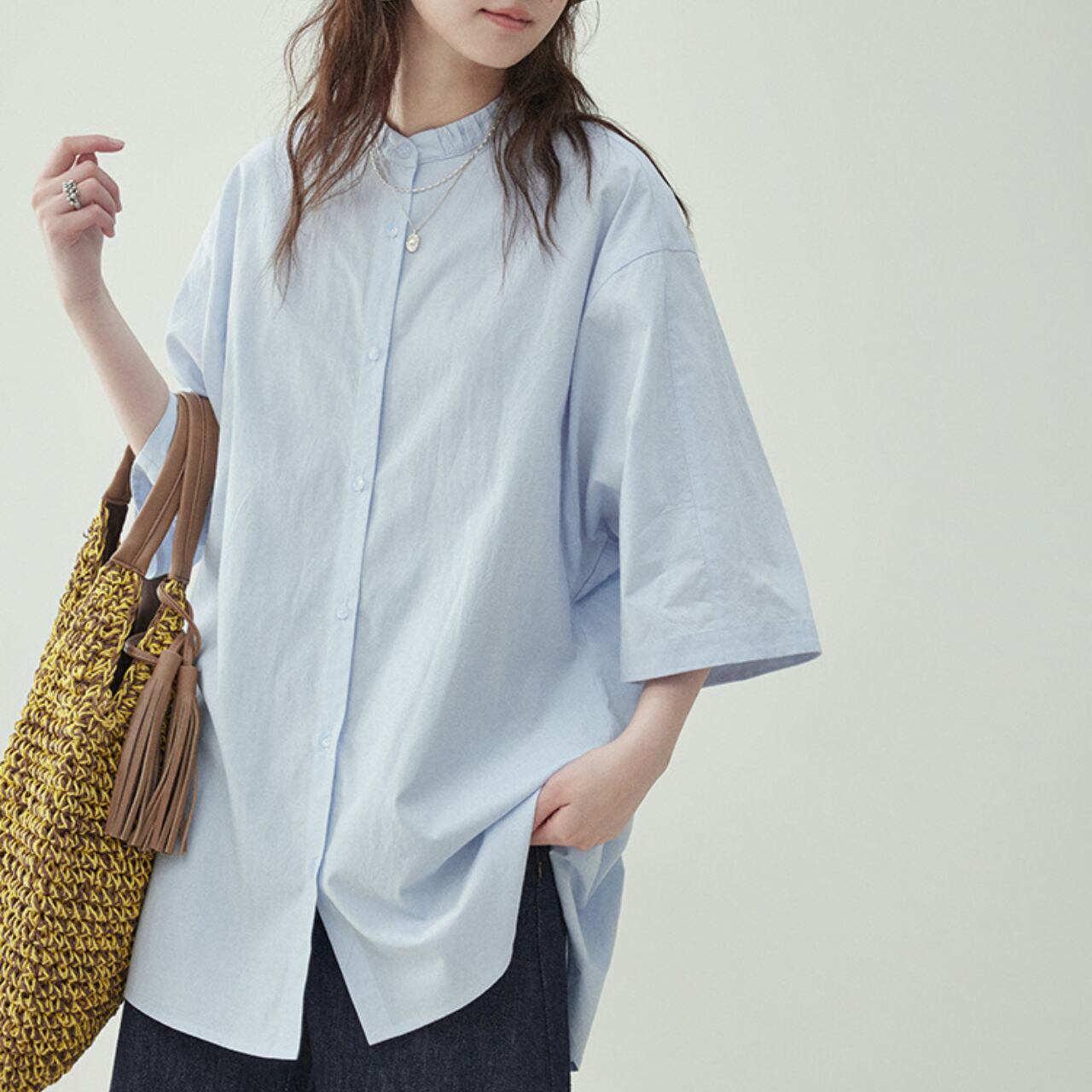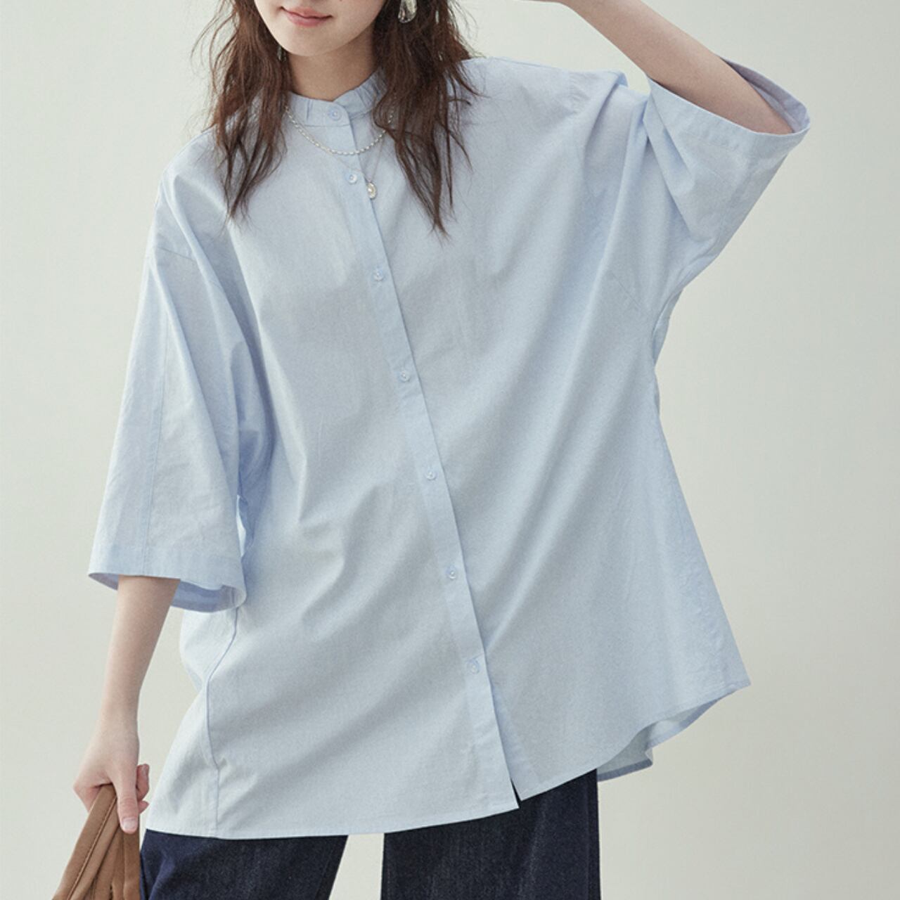 クリーンな印象を与えるバンドカラーに、リラックス感のあるゆったりシルエットを掛け合わせた1枚。
