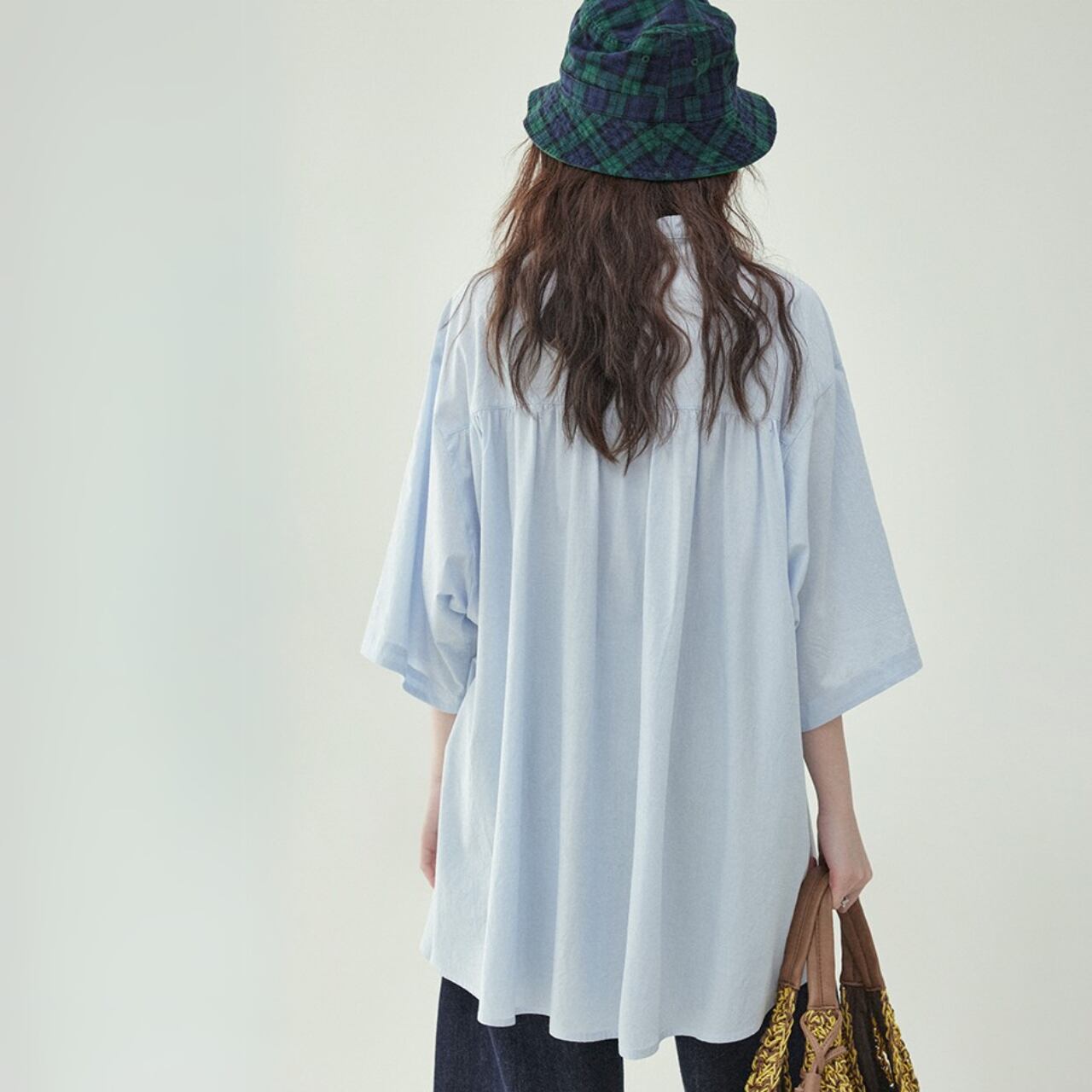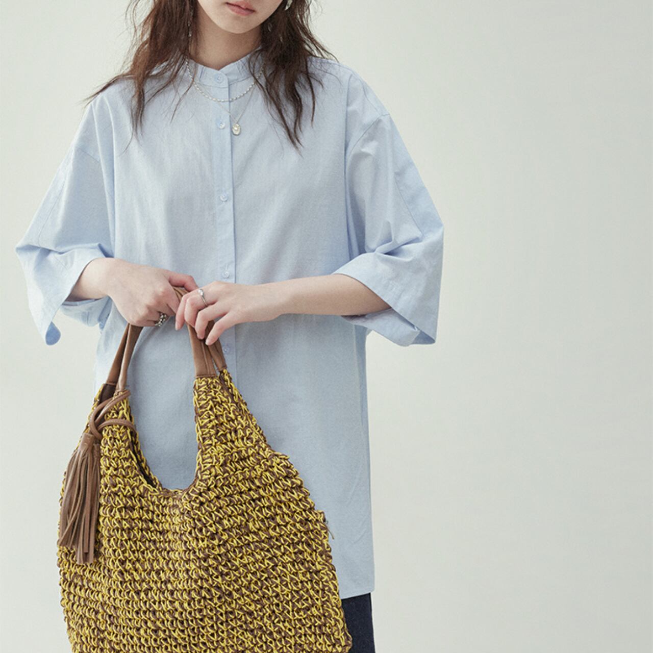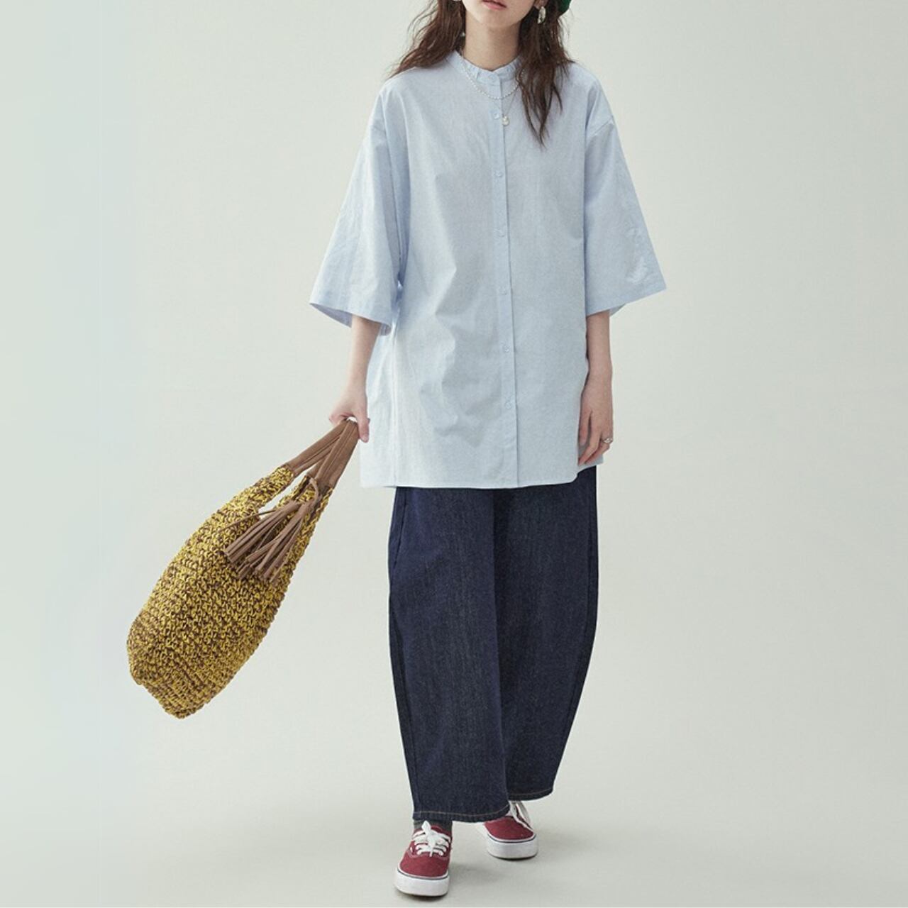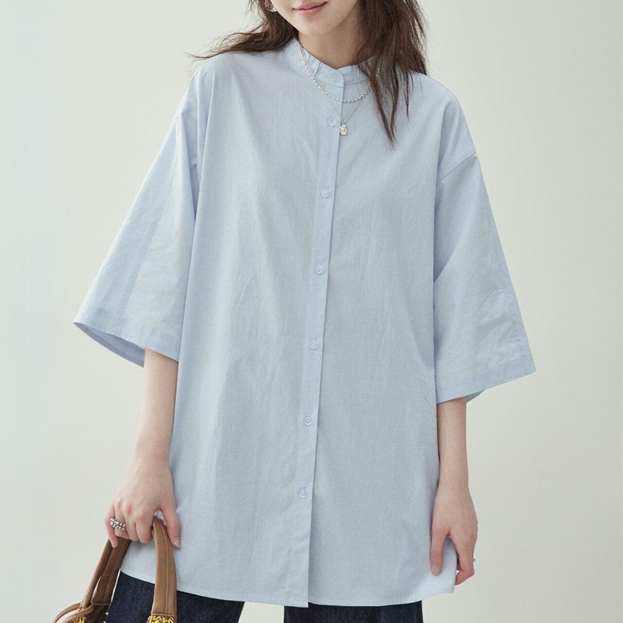 クリーンな印象を与えるバンドカラーに、リラックス感のあるゆったりシルエットを掛け合わせた1枚。