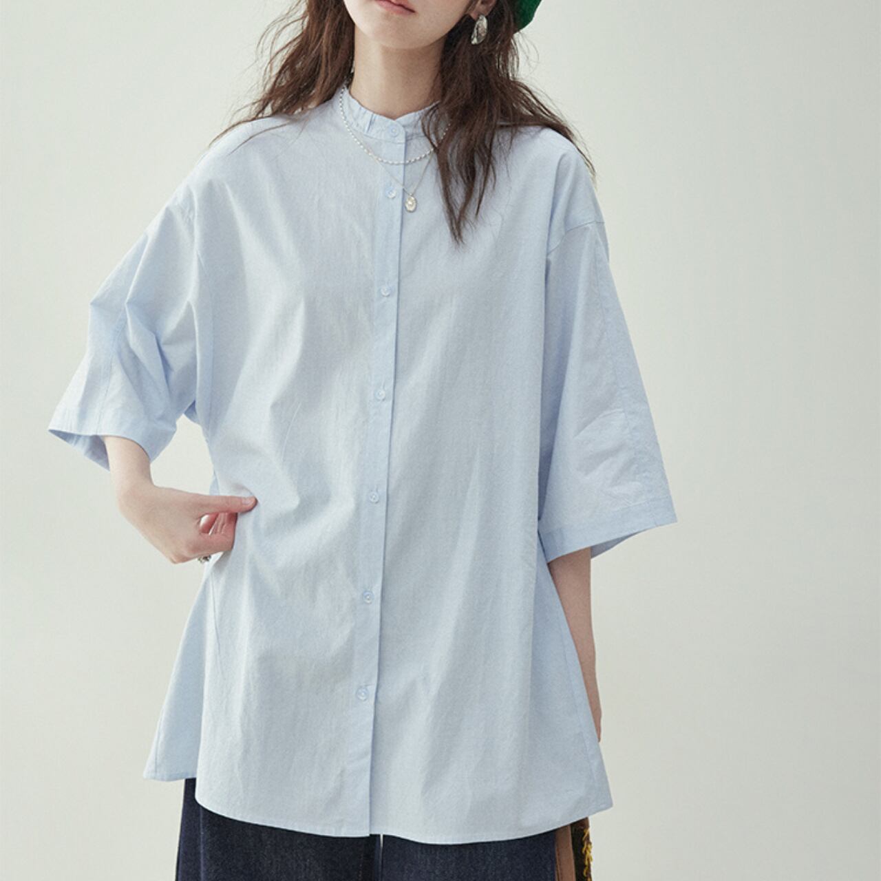 バンドカラールーズシルエットシャツ A01431