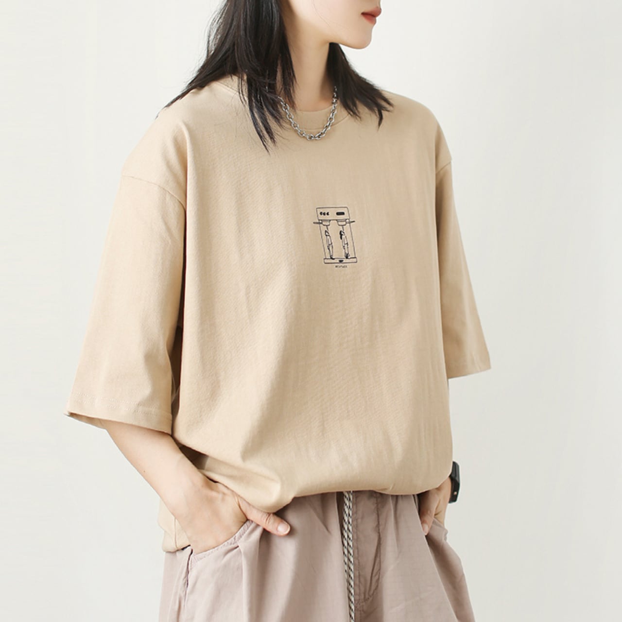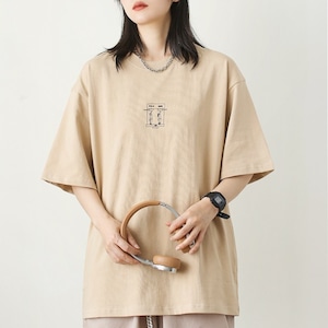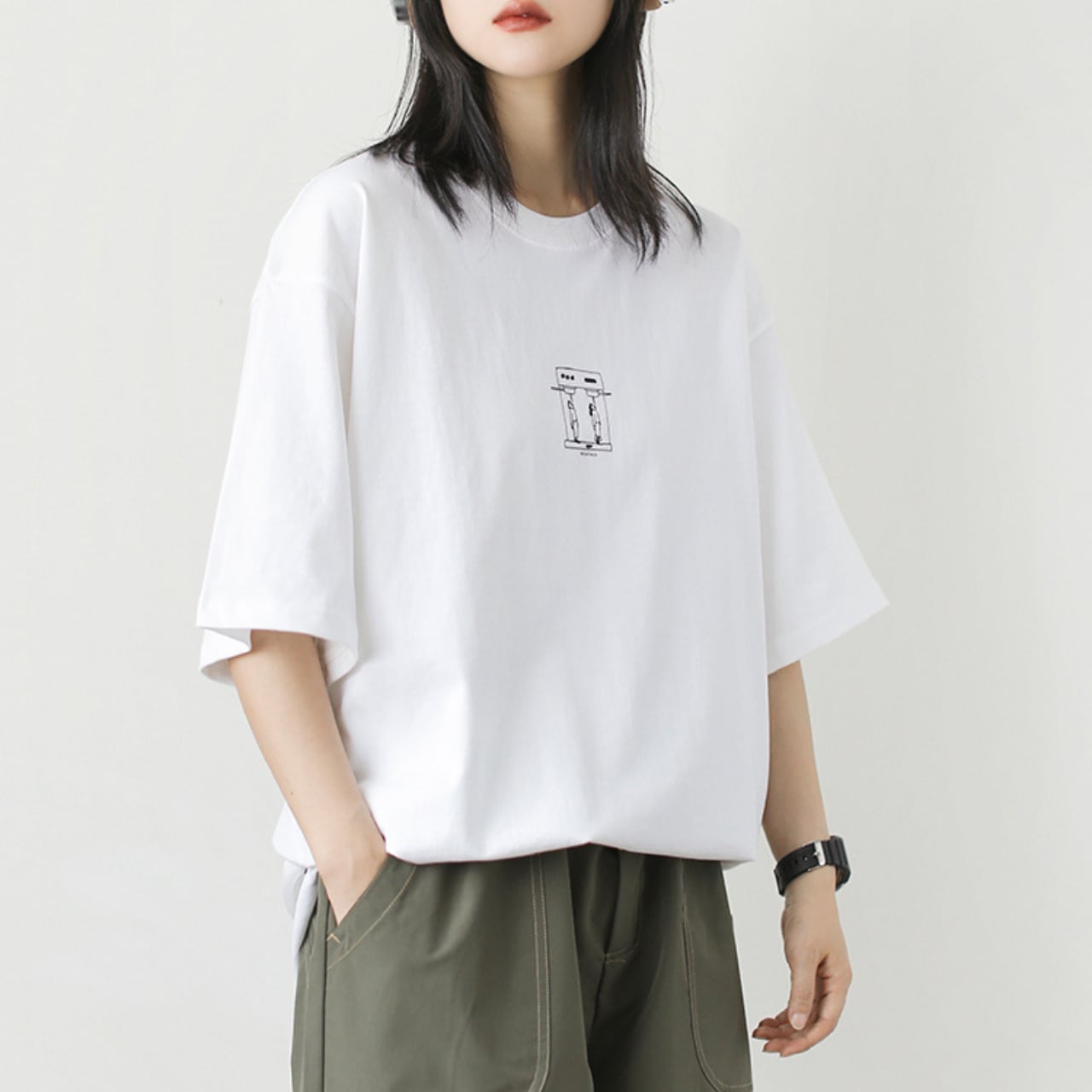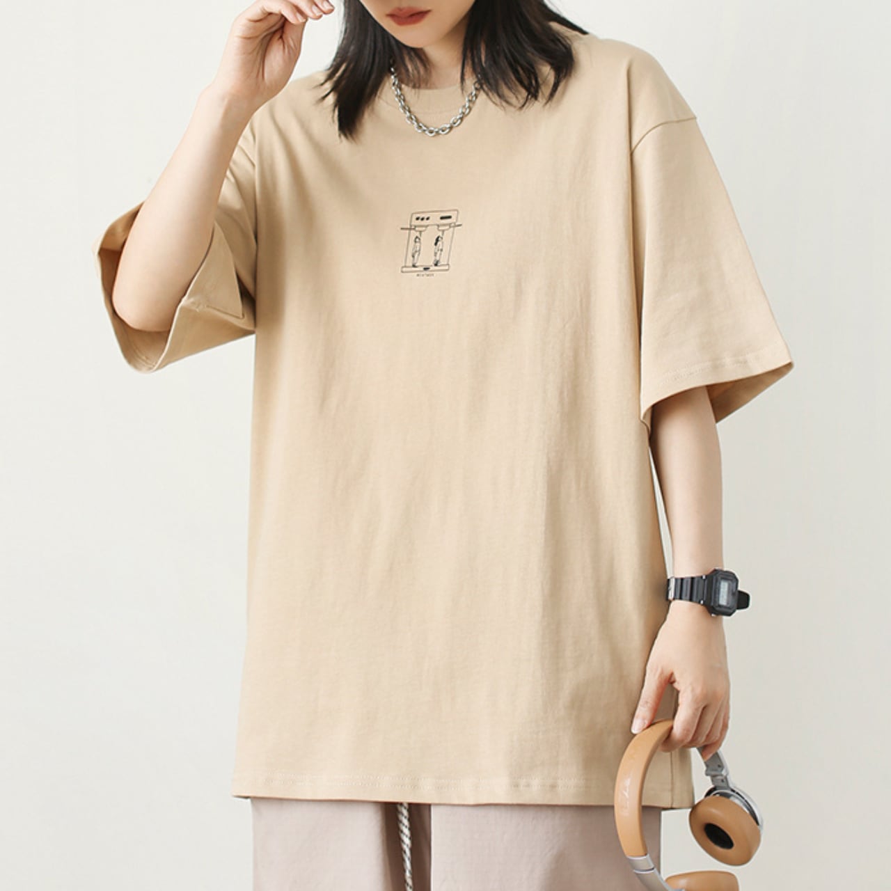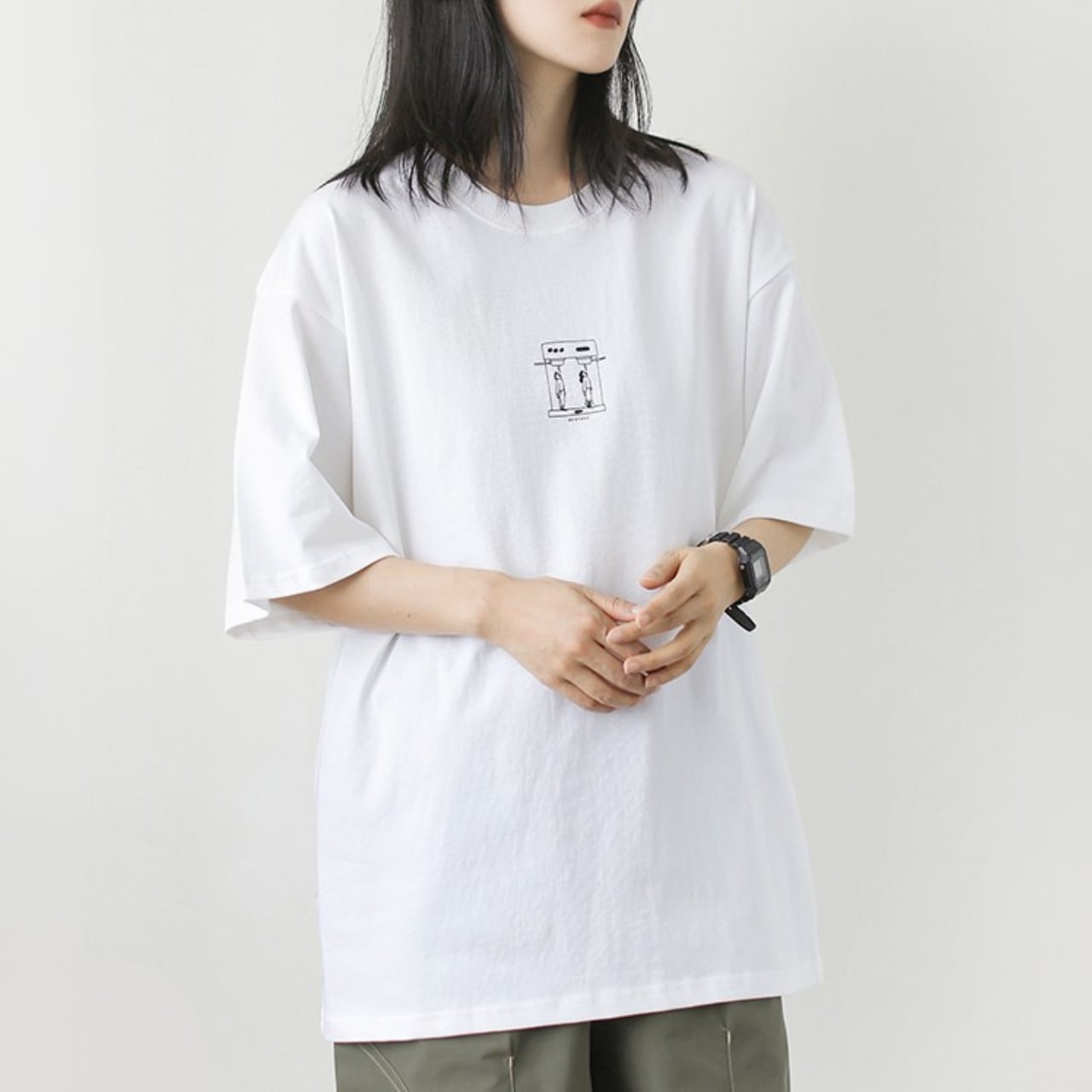 胸元のさりげないプリントがアクセントを添える、ルーズシルエットTシャツ。