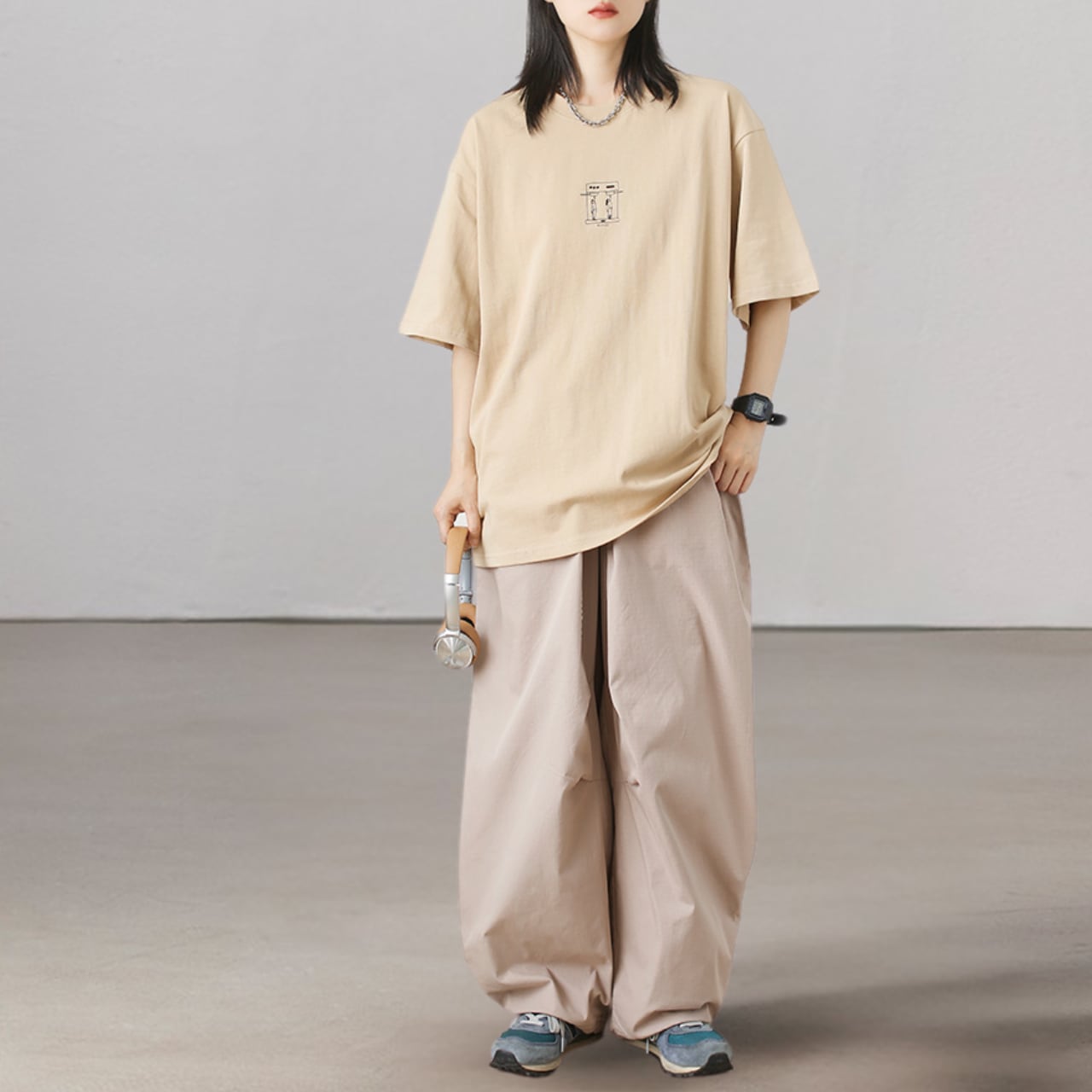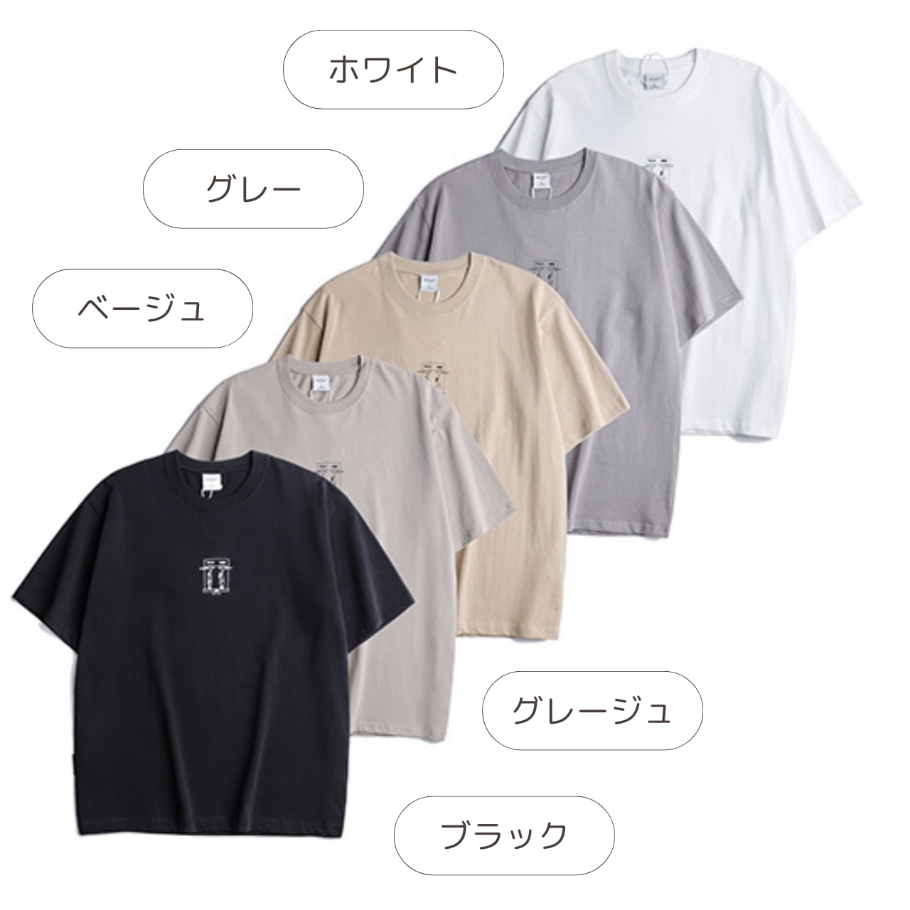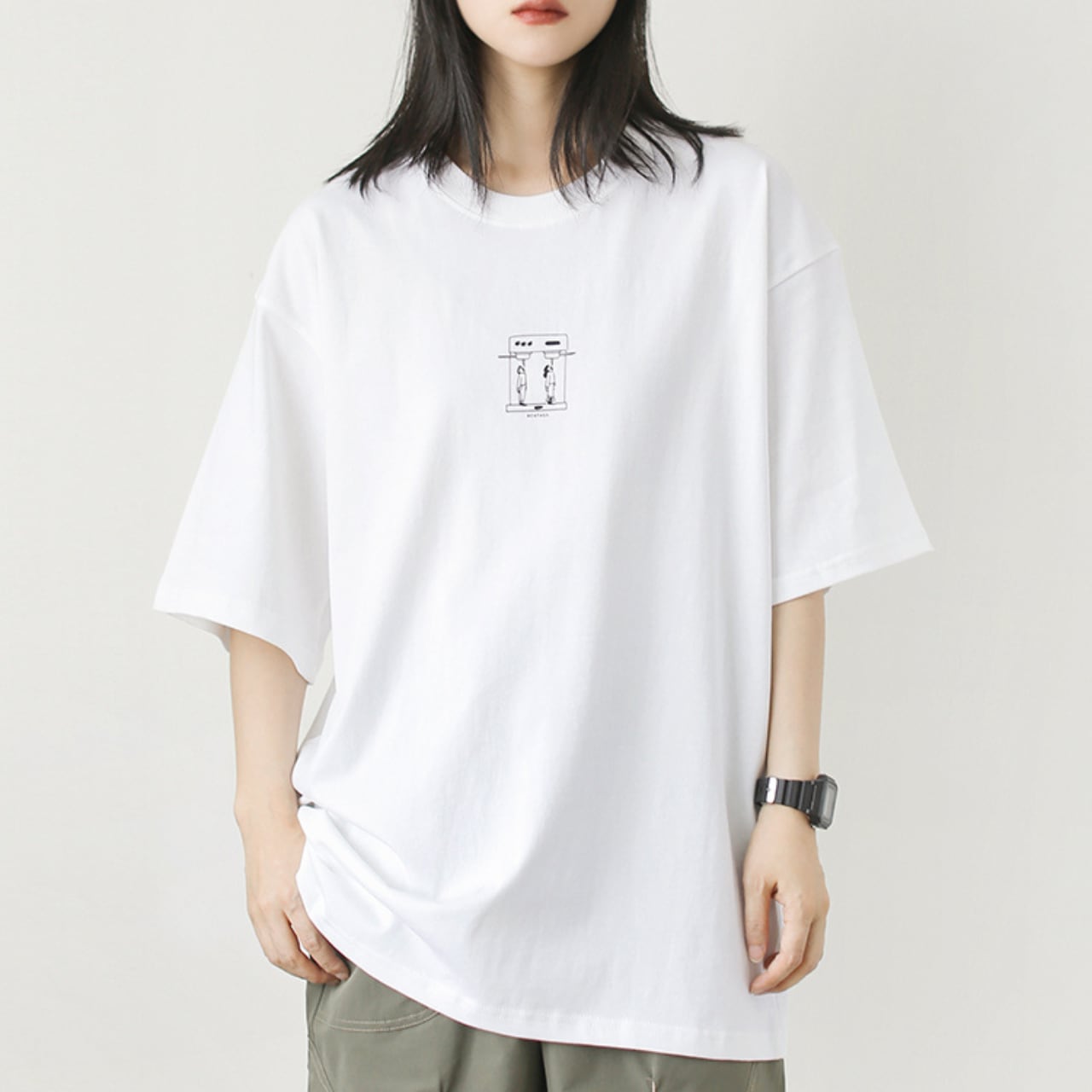 胸元のさりげないプリントがアクセントを添える、ルーズシルエットTシャツ。