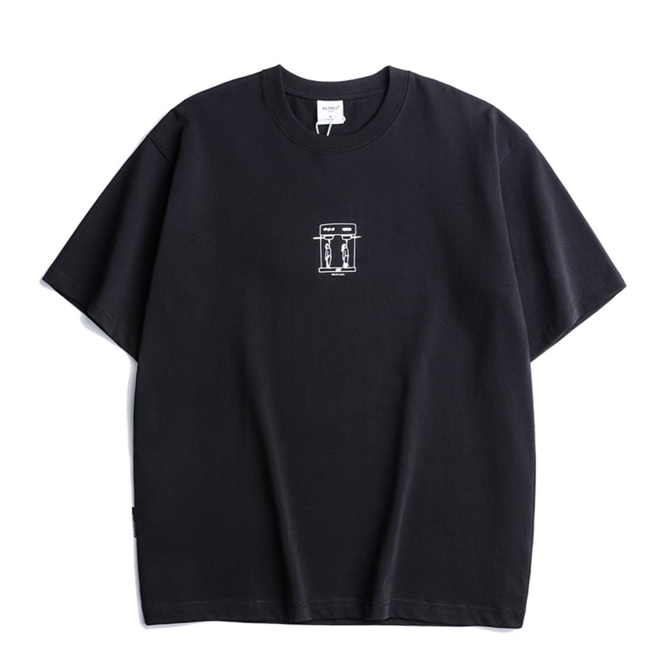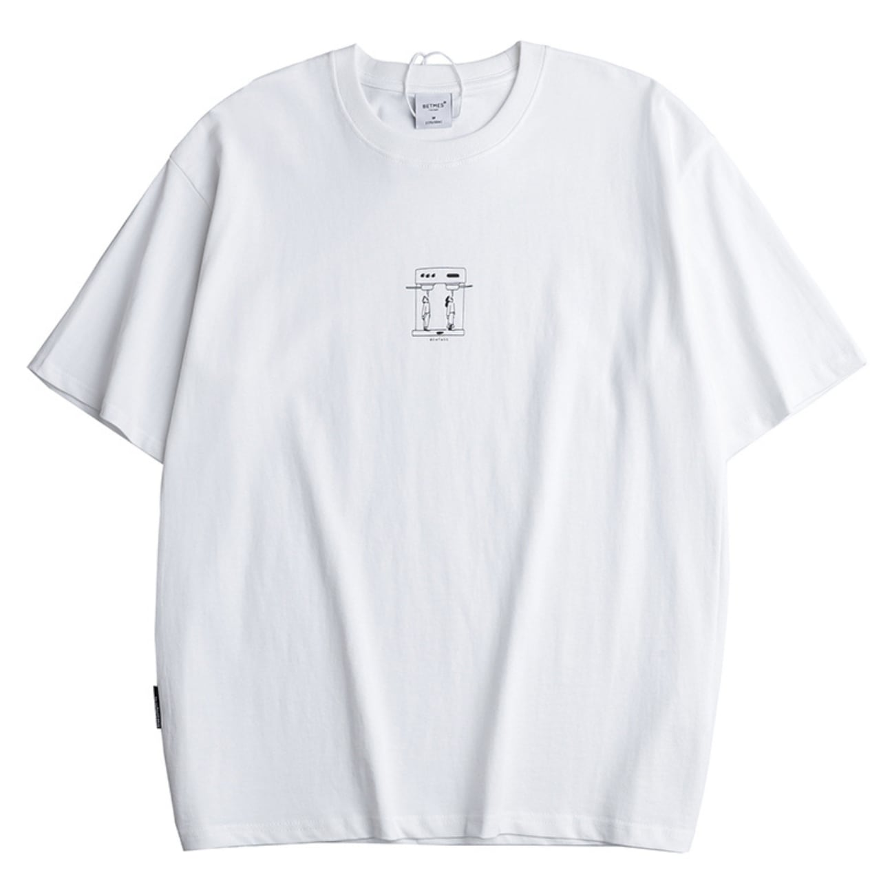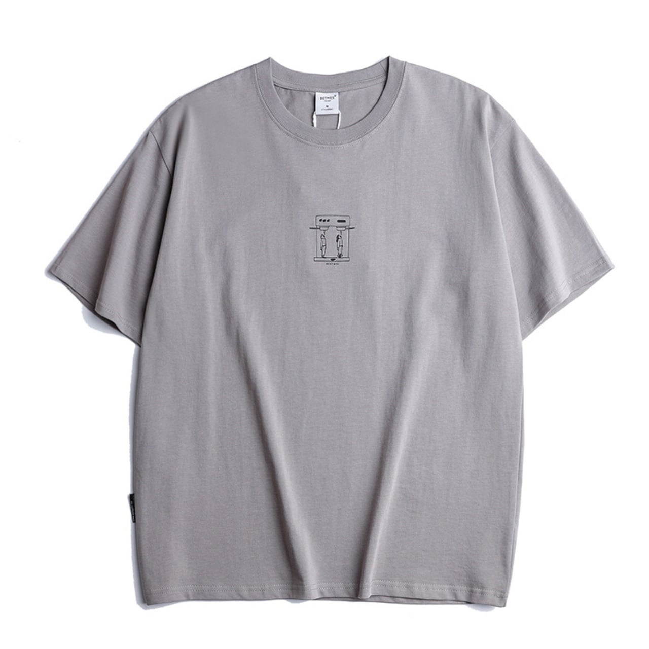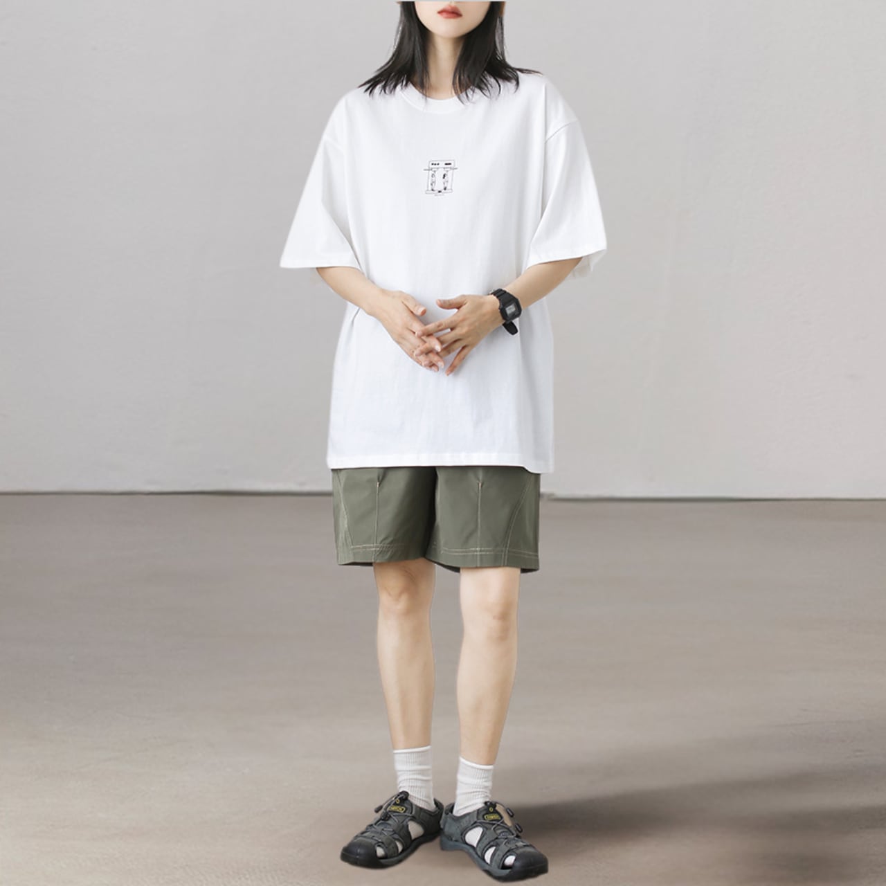 胸元のさりげないプリントがアクセントを添える、ルーズシルエットTシャツ。