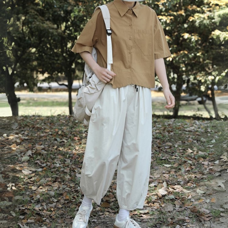 ゆとりのあるボクシーなシルエットで、タックパンツやロングスカートに合わせてもバランス◎