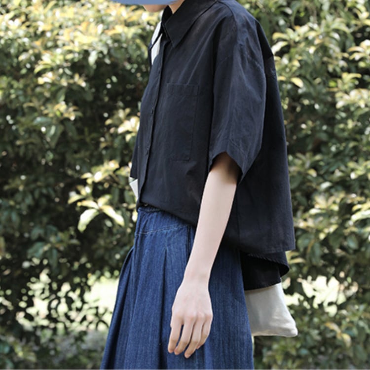さりげなく主張するアシンメトリーポケット×丸みを帯びた裾が印象的な一枚。