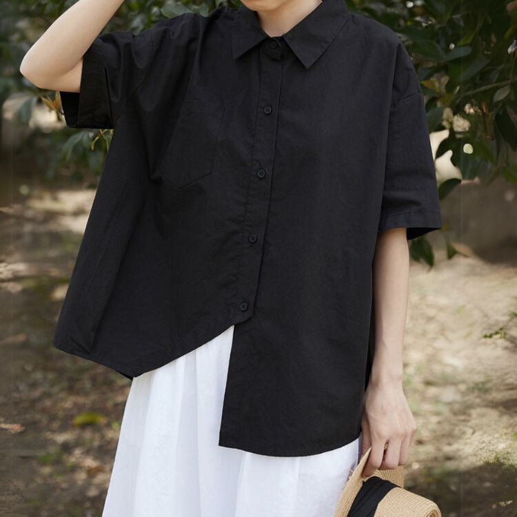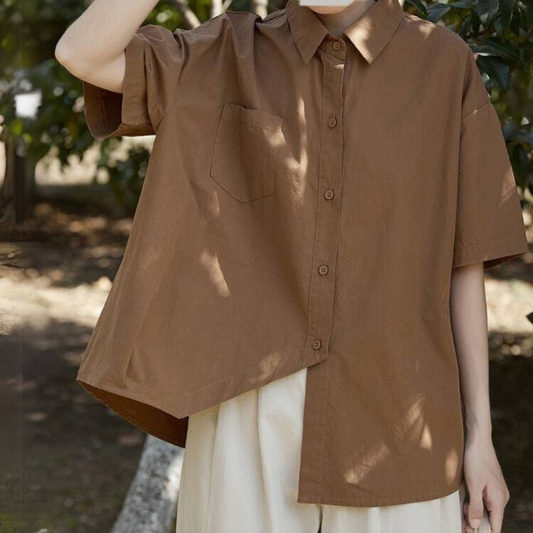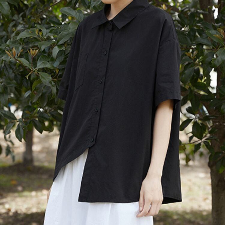 アシンメトリーヘムコットンシャツ A01482