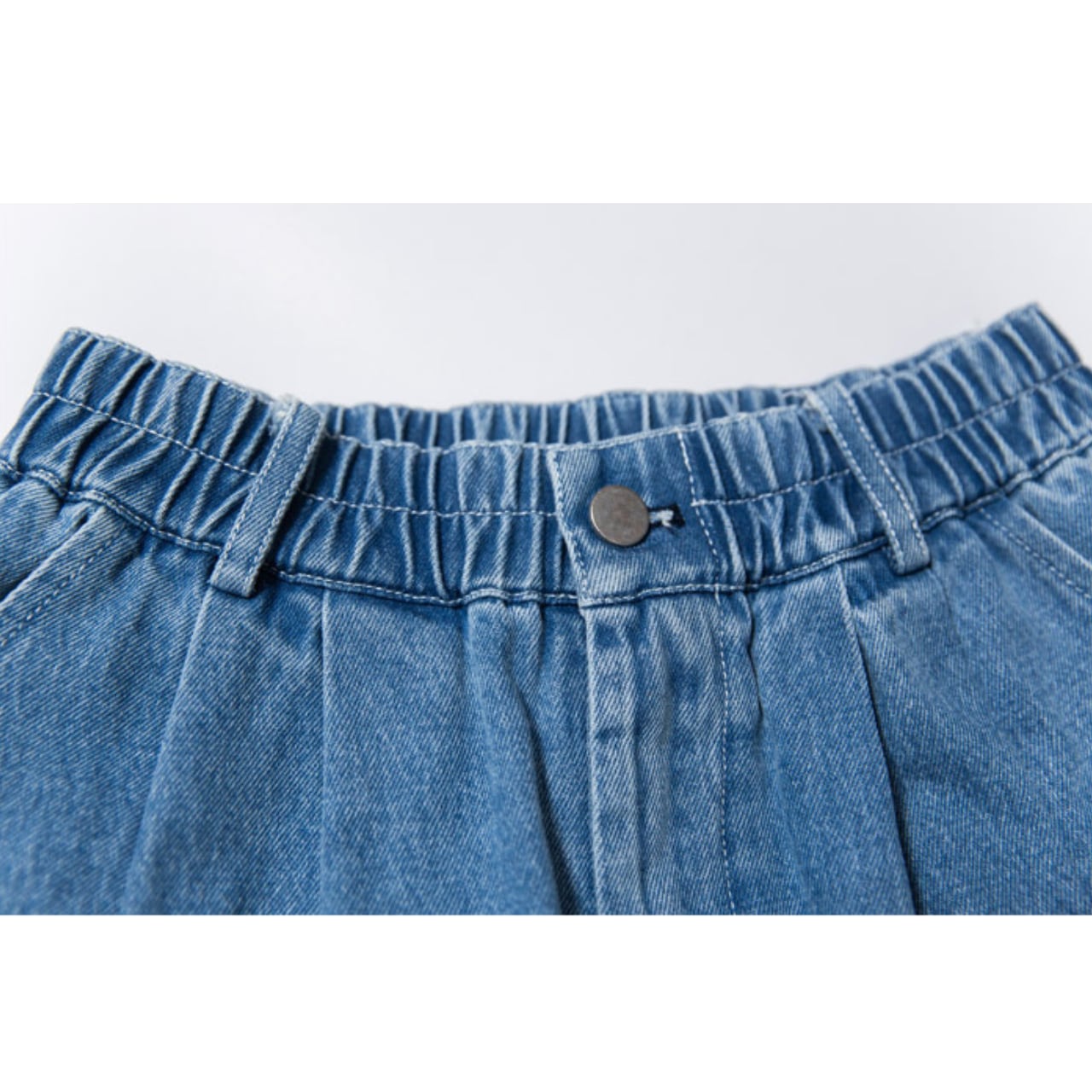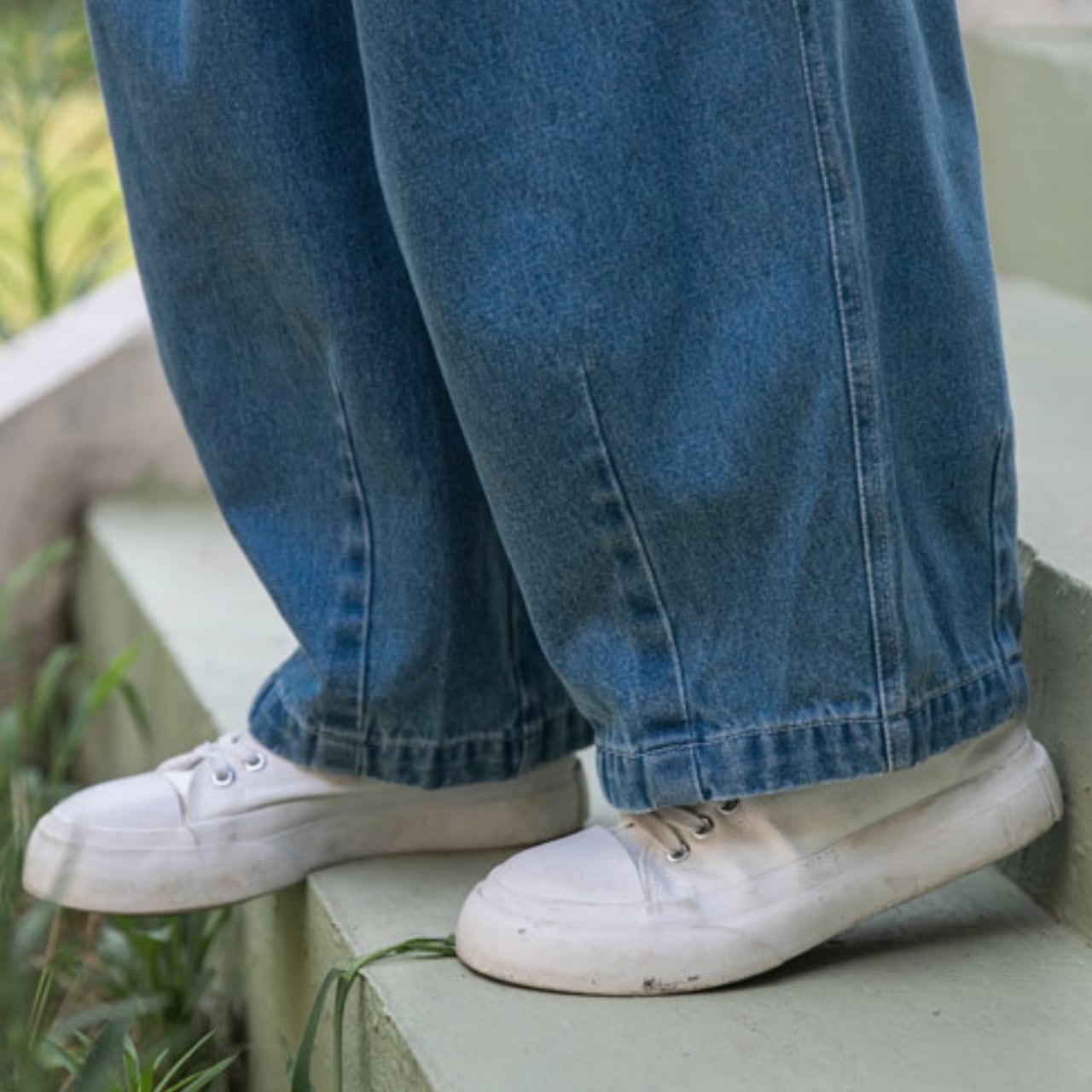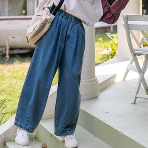 “フロントのタックと裾の絞りが作る、丸みのあるシルエットが印象的なデニムパンツ。ウエストは総ゴム仕様で、ストレスフリーな穿き心地!Tシャツやスウェットを合わせるだけでサマになる、メンズライクな一本です。”