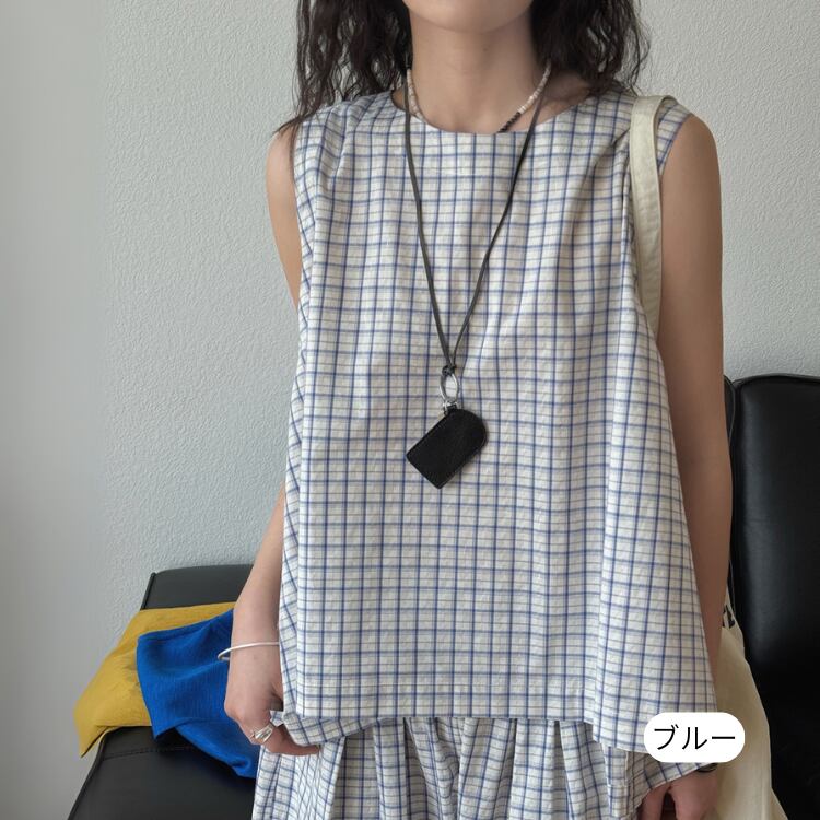 2WAYボタンチェックノースリーブ A01590