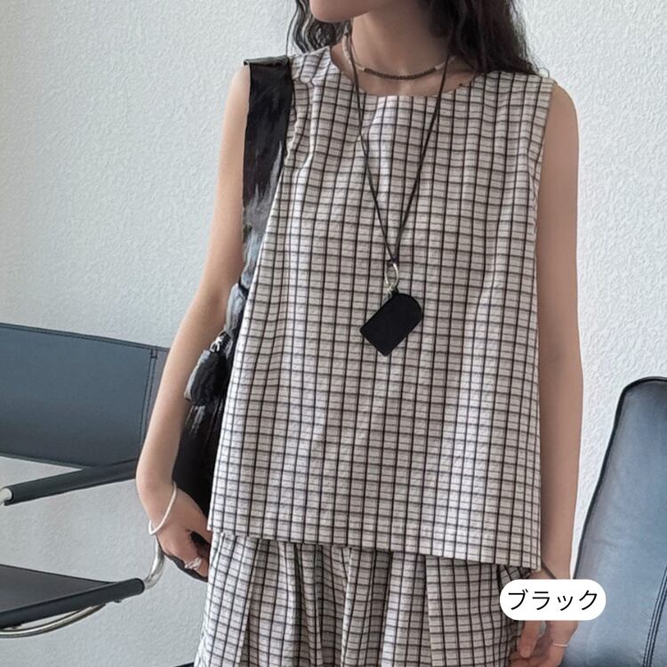 柔らかな風合いのチェック柄が涼しげな、ノースリーブトップス。