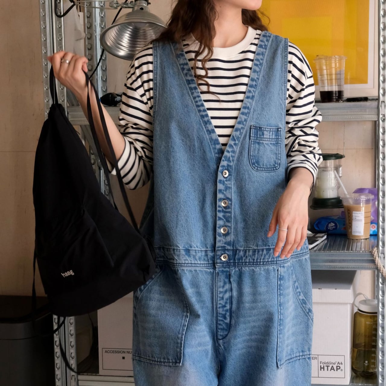 ヴィンテージ感漂う風合い×ルーズシルエットが魅力のデニムサロペット。
