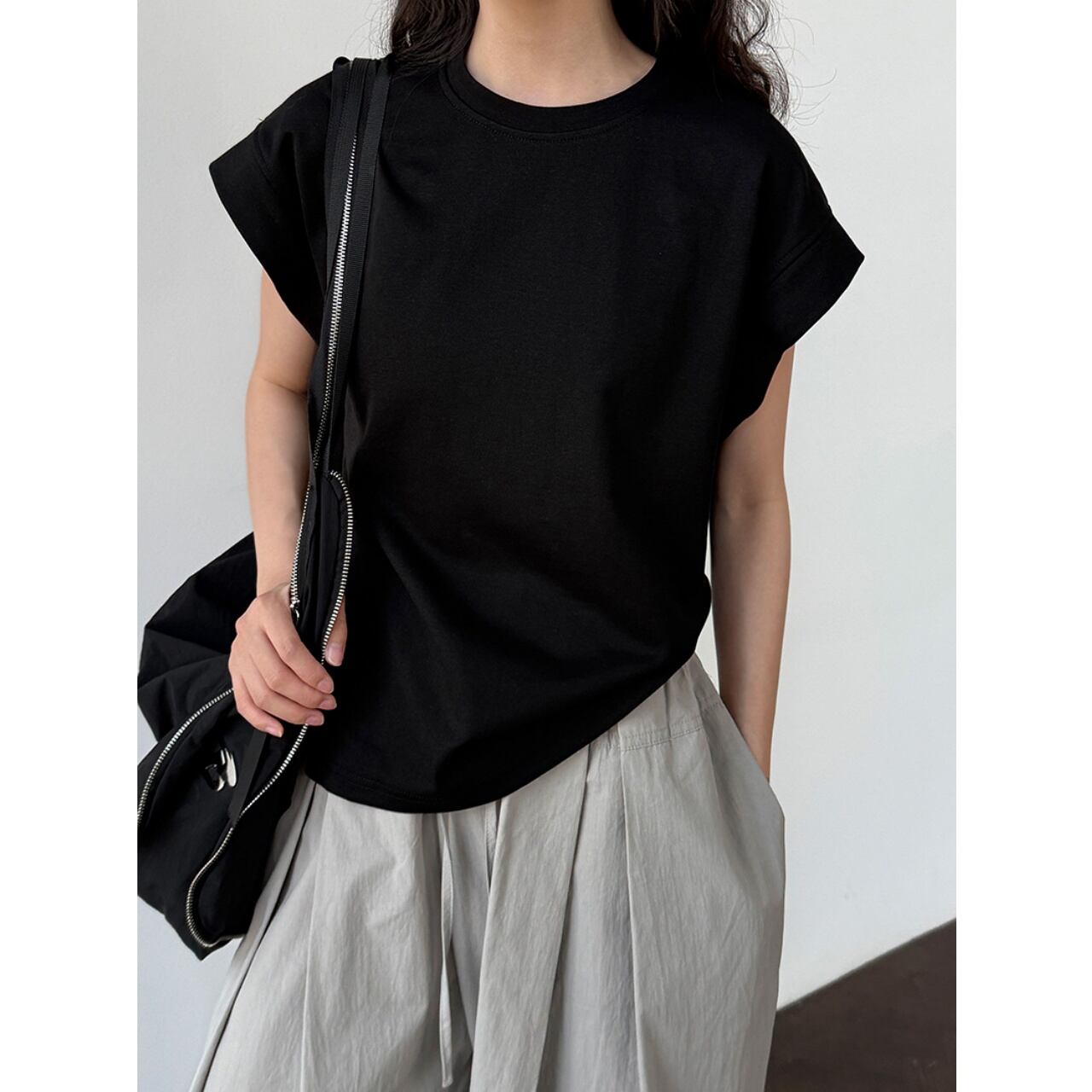 フレンンチスリーブドロップショルダーTシャツ A01641
