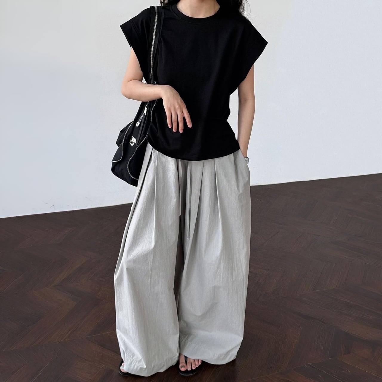 気になる二の腕もすっきり見せ、一枚でサマになる優秀アイテムです。