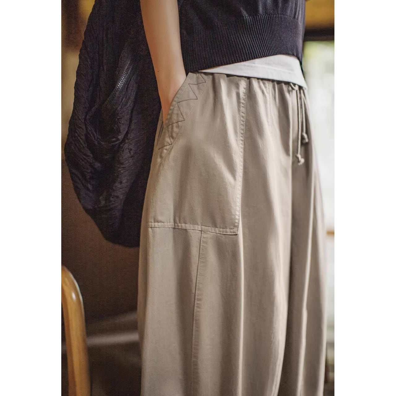 ワイドシルエットが体型カバーも叶えてくれる、着回し力抜群のドロストワイドパンツ。