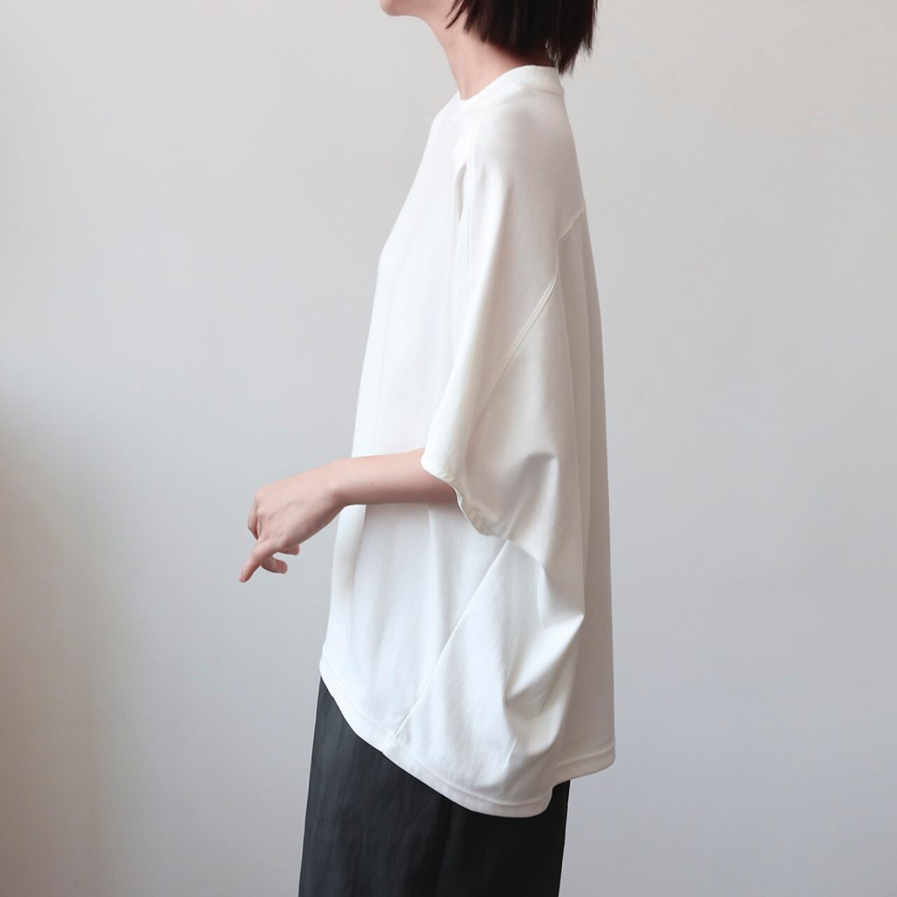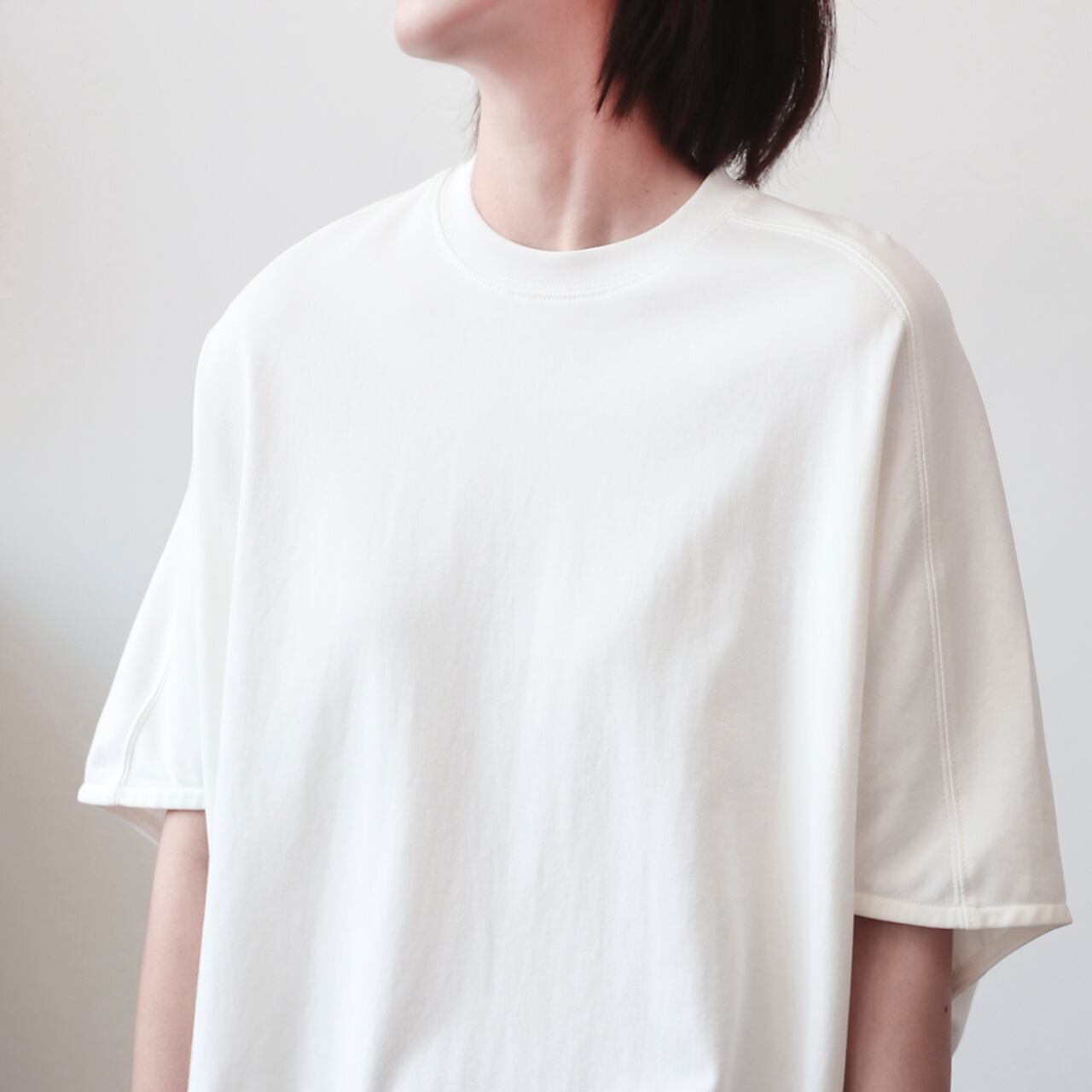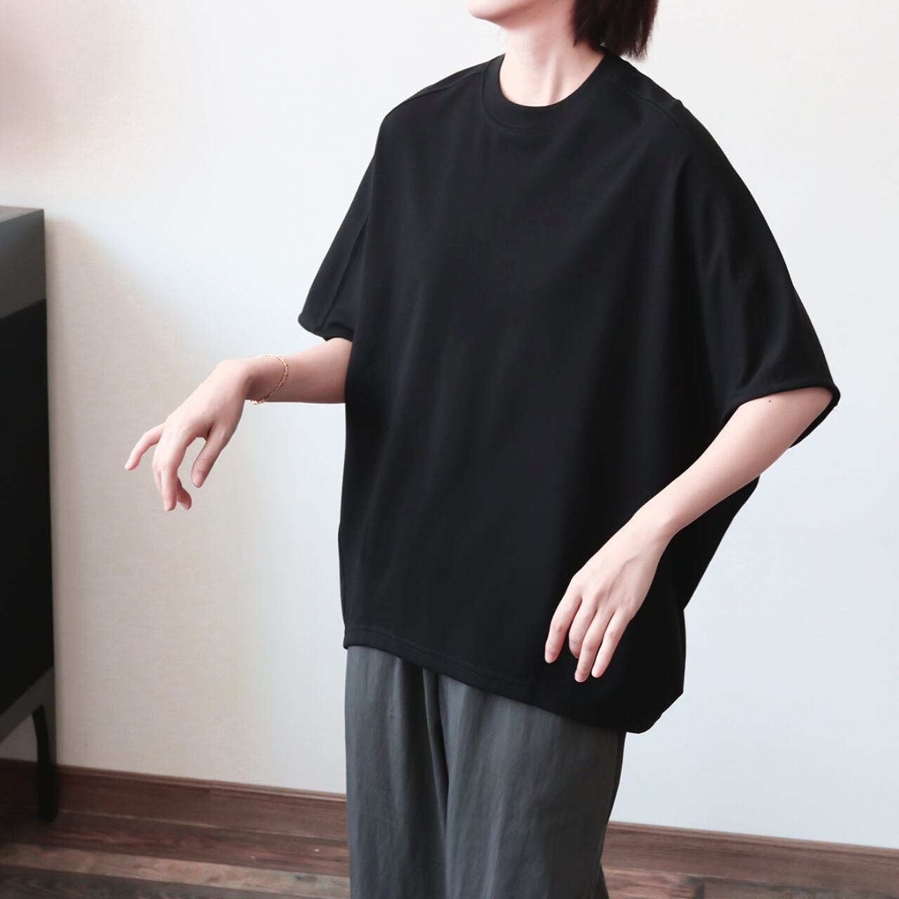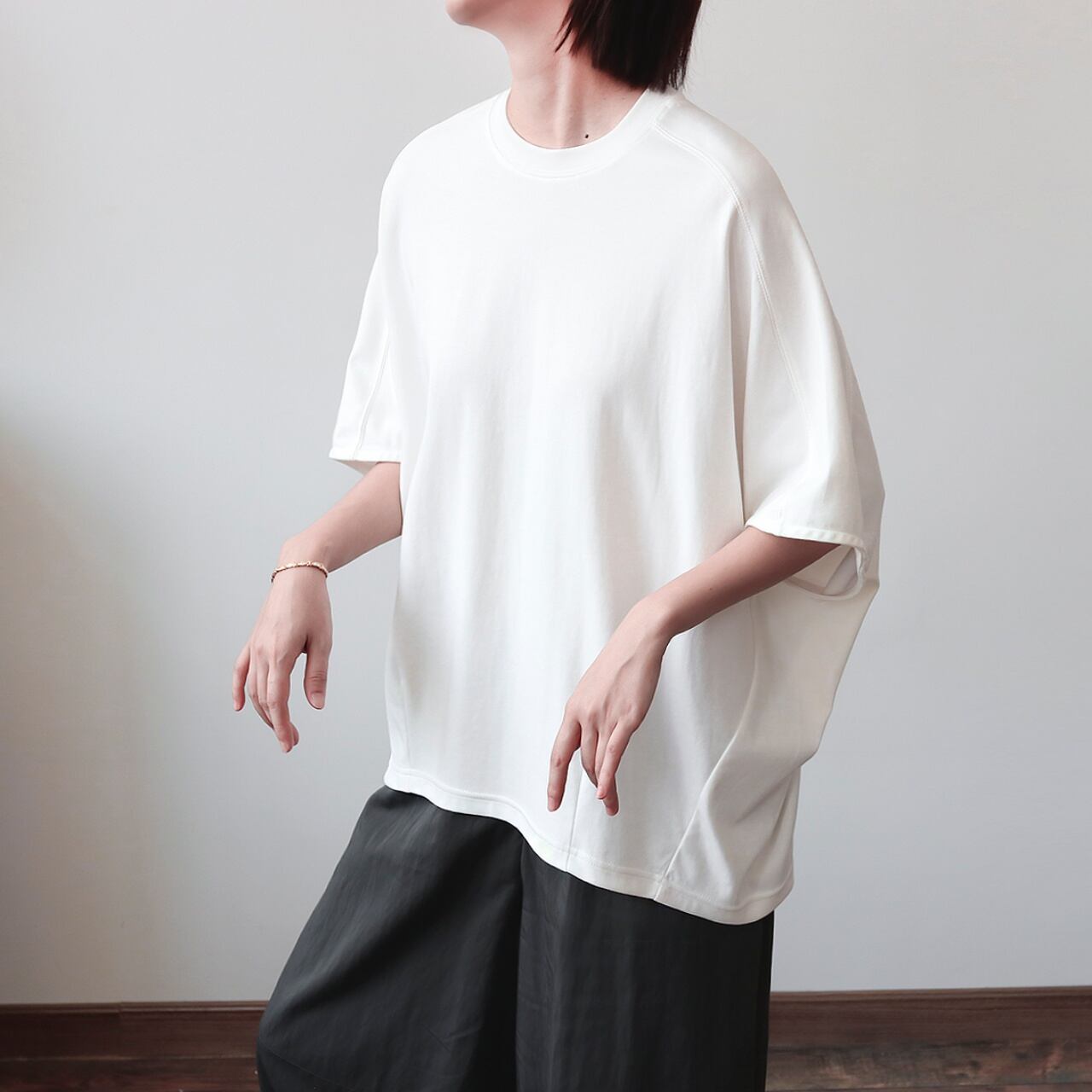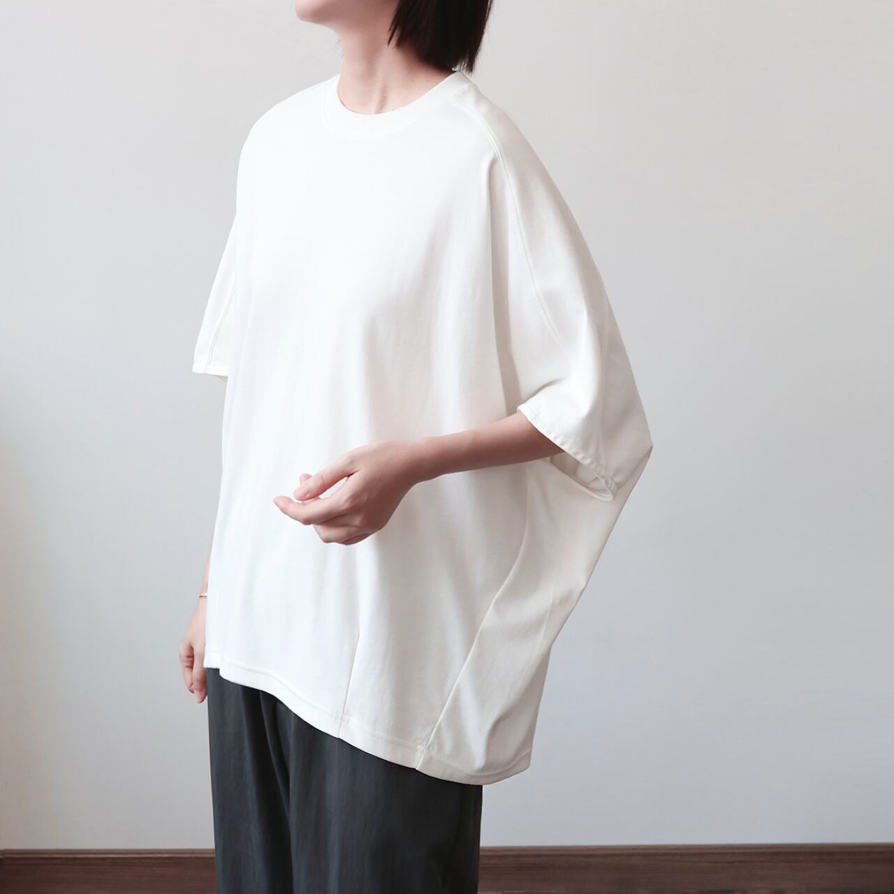 後ろ姿まで絵になる、洗練されたバックヨークドルマンスリーブTシャツ。