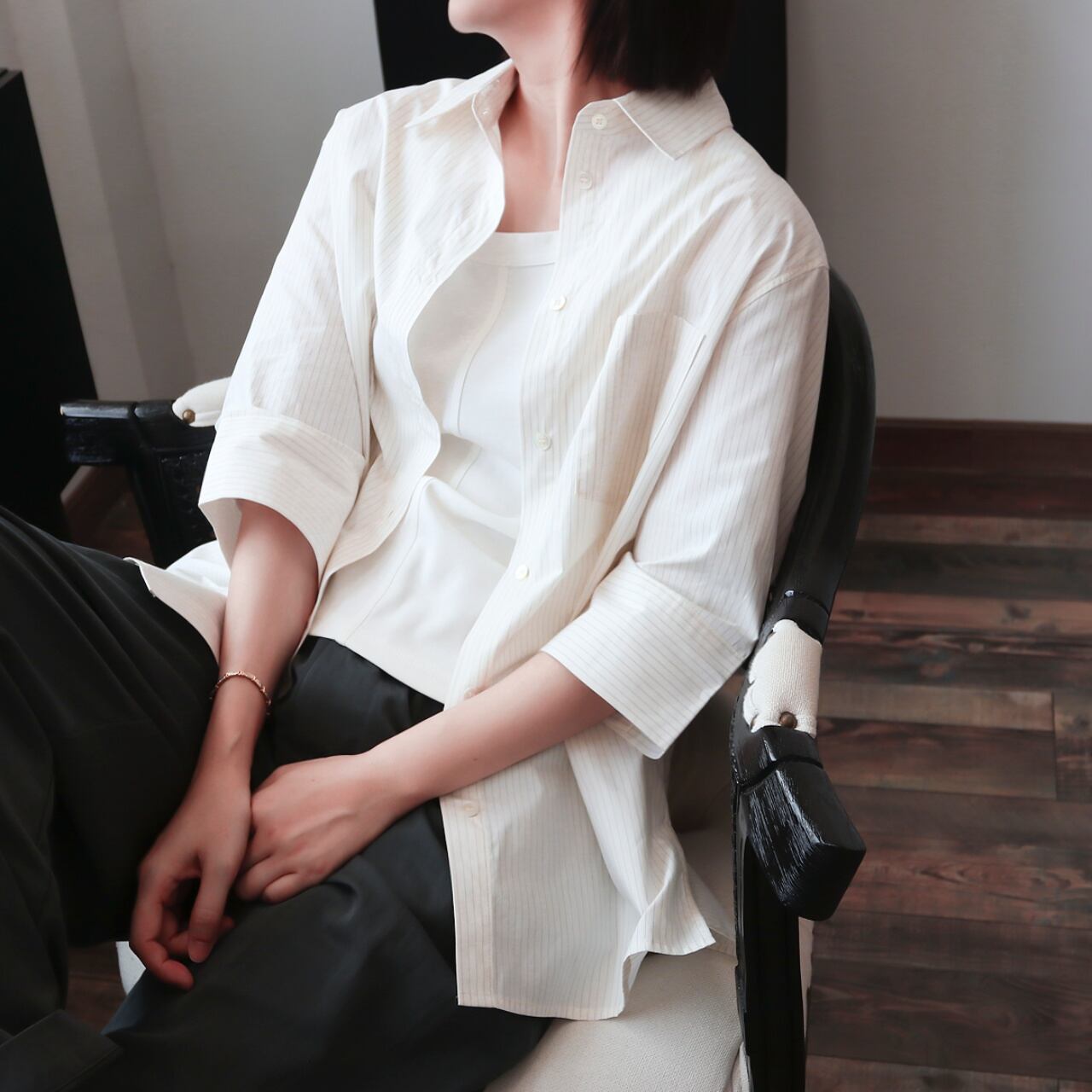ストライプオーバーサイズ3/4スリーブシャツ A01670
