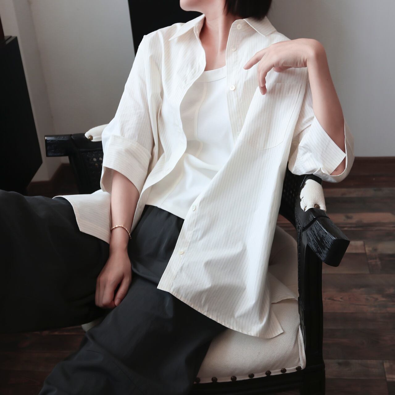 きちんと感と抜け感を両立する、大人のストライプシャツ。