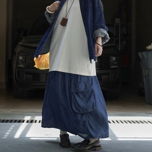 デザインステッチパッチワークデニムスカート A01684