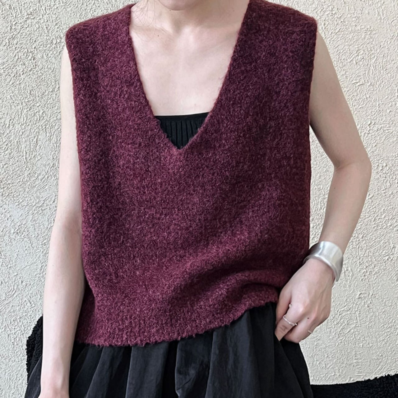 ディープVネックシャギーニットベスト A01697