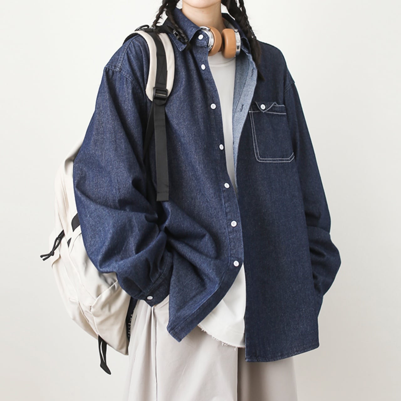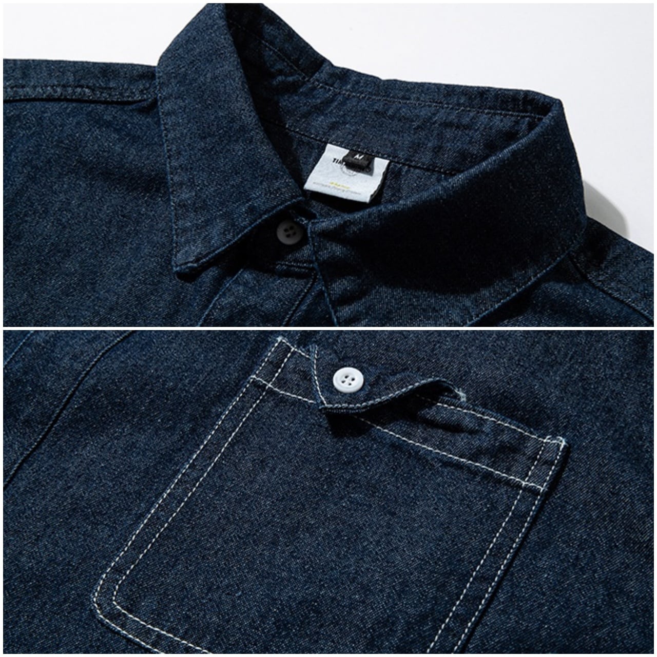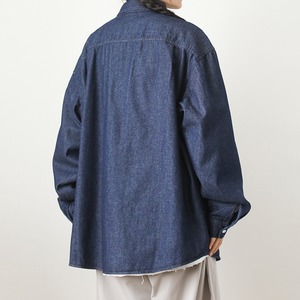 ステッチワークパッチポケットユニセックスデニムシャツ A01700