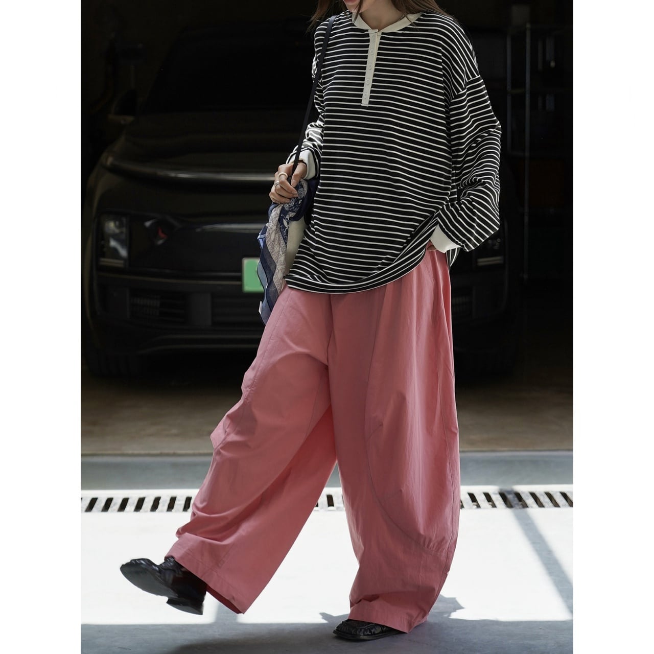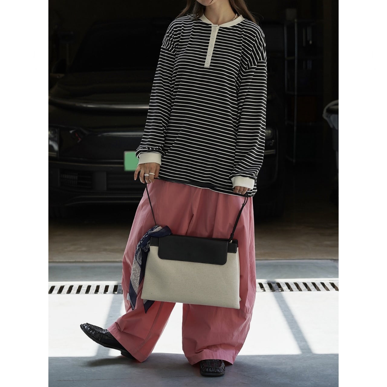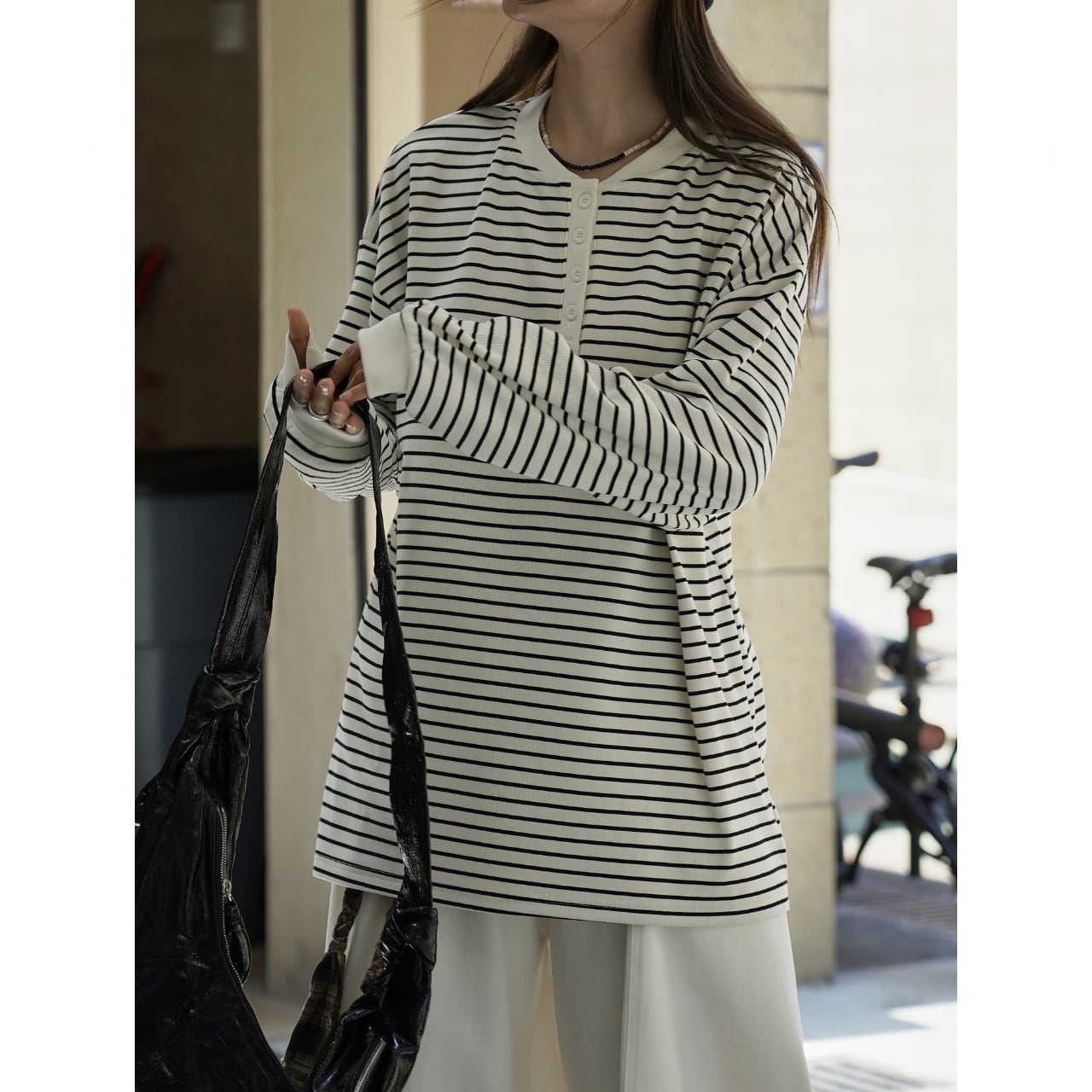 ヘンリーネックオーバーサイズボーダーTシャツ A01702