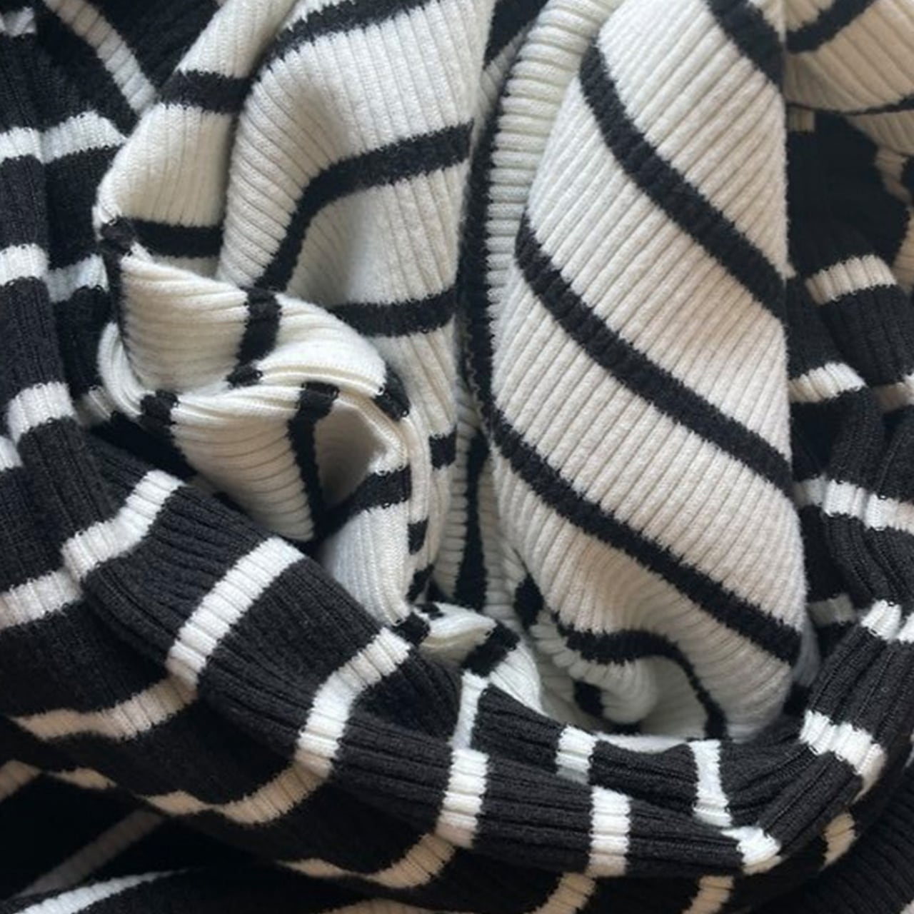 細めのボーダーが、着こなしに程よいアクセントをプラス。