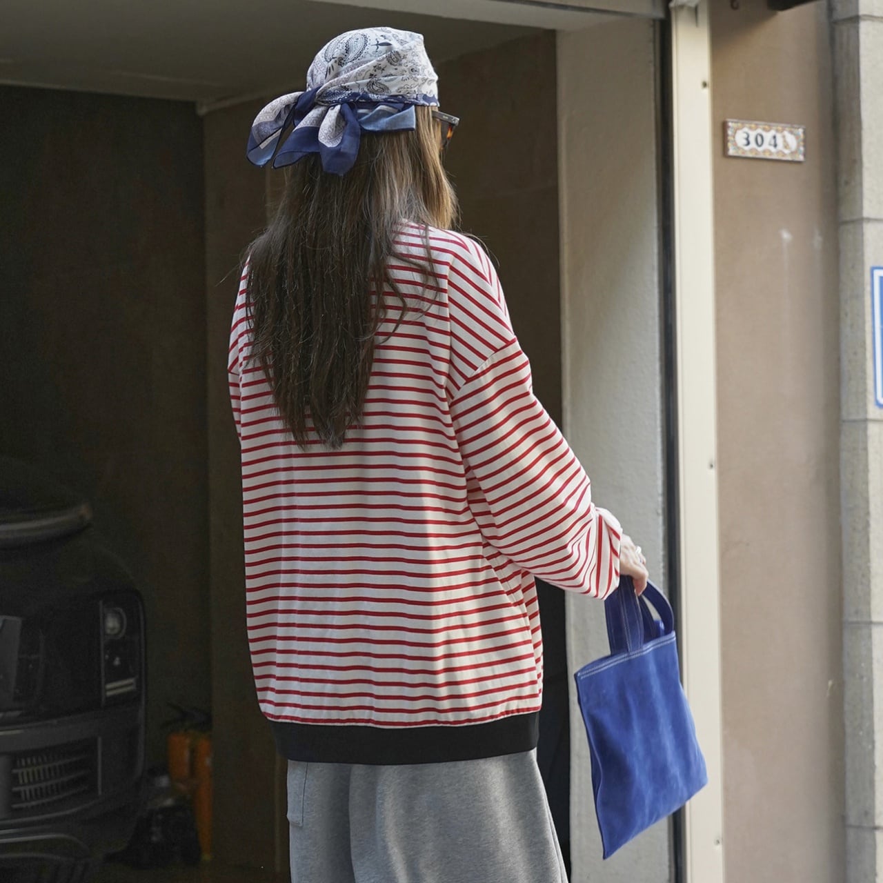 オーバーサイズコントラストリブボーダークルーネックロンT A01704