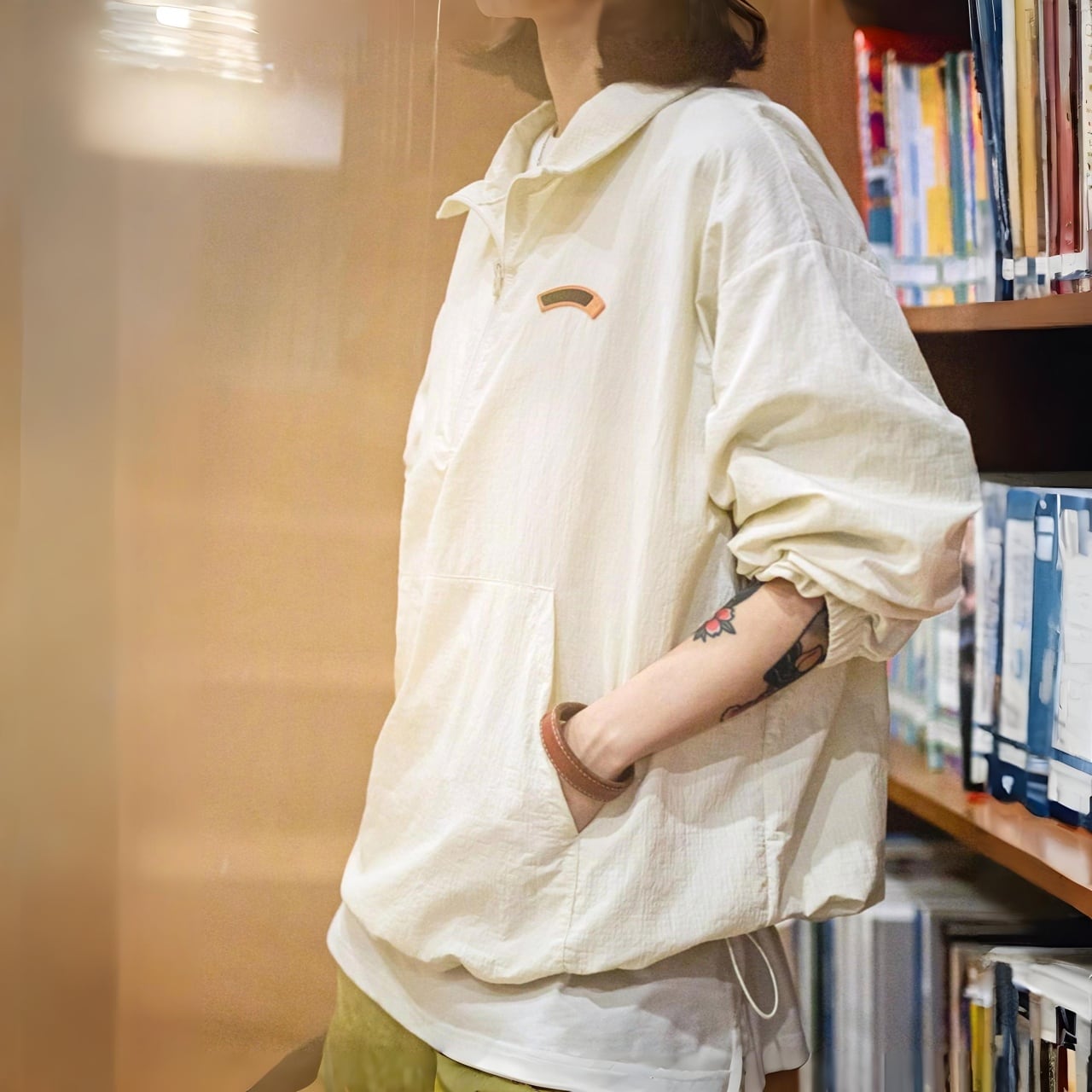 ナイロン素材がスポーティーでこなれた印象を与えるプルオーバー。