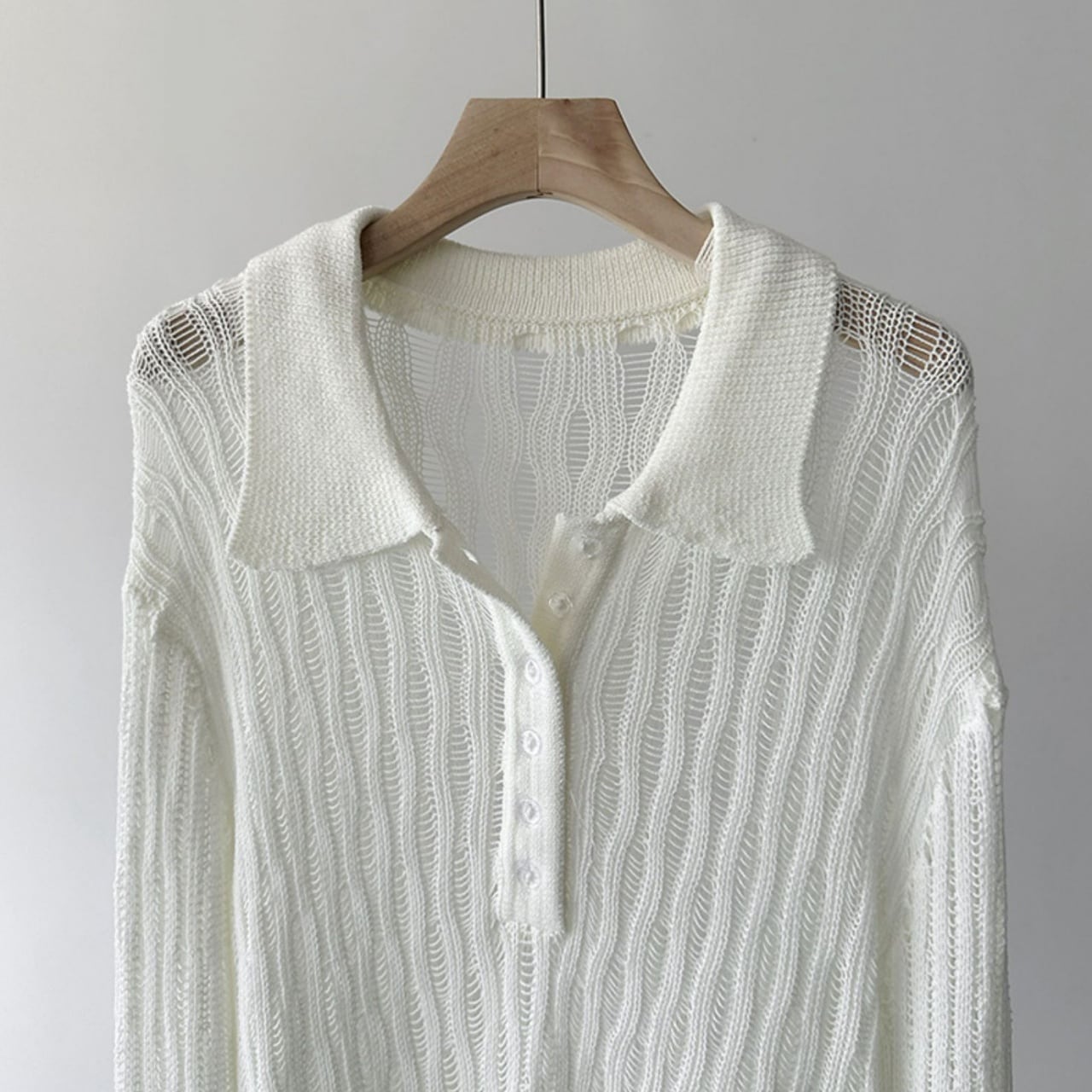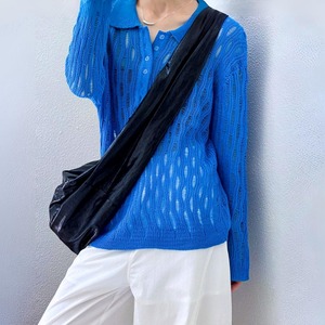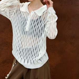 オープンワークポロネックニットプルオーバー A01708