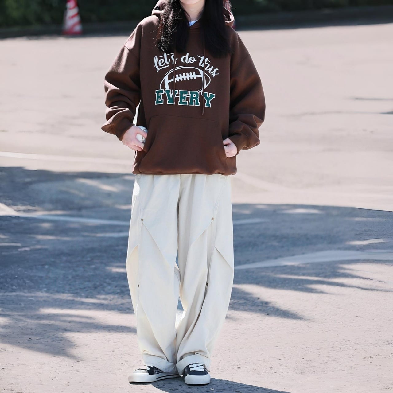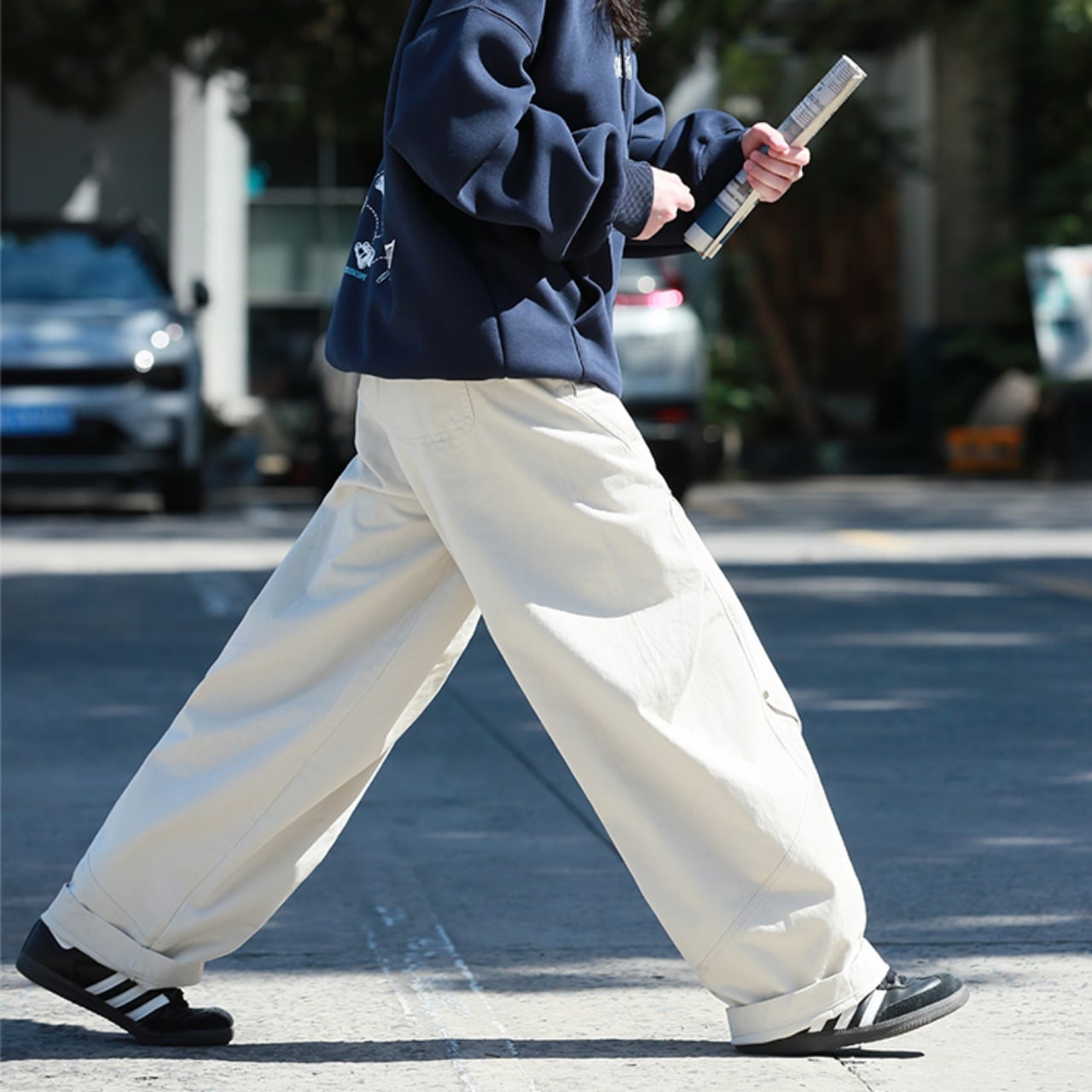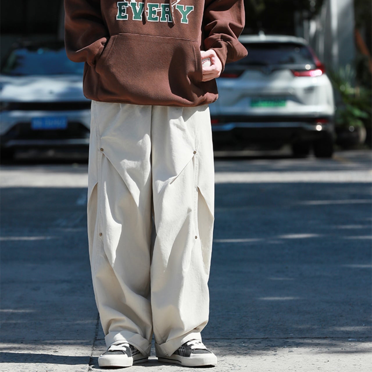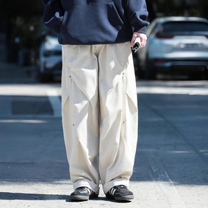 立体的なタックとリベットが目を引くデザイン性の高いワイドパンツ。