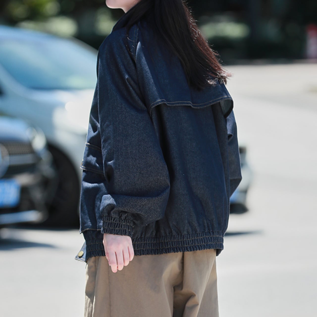 スタンドカラービッグポケットユニセックスデニムブルゾン A01714