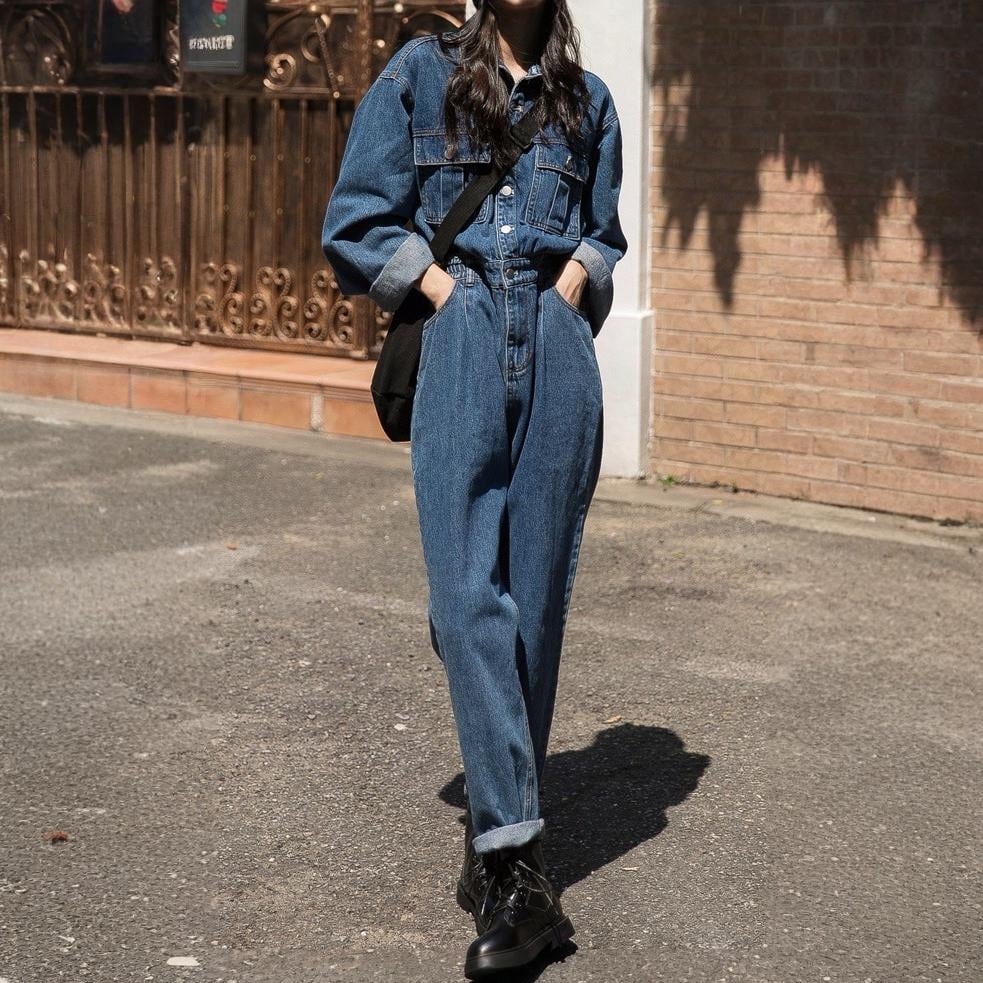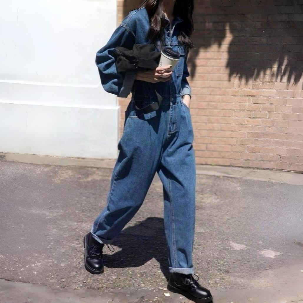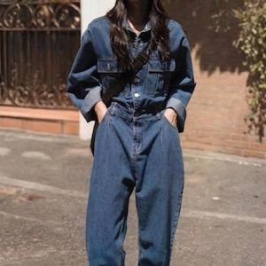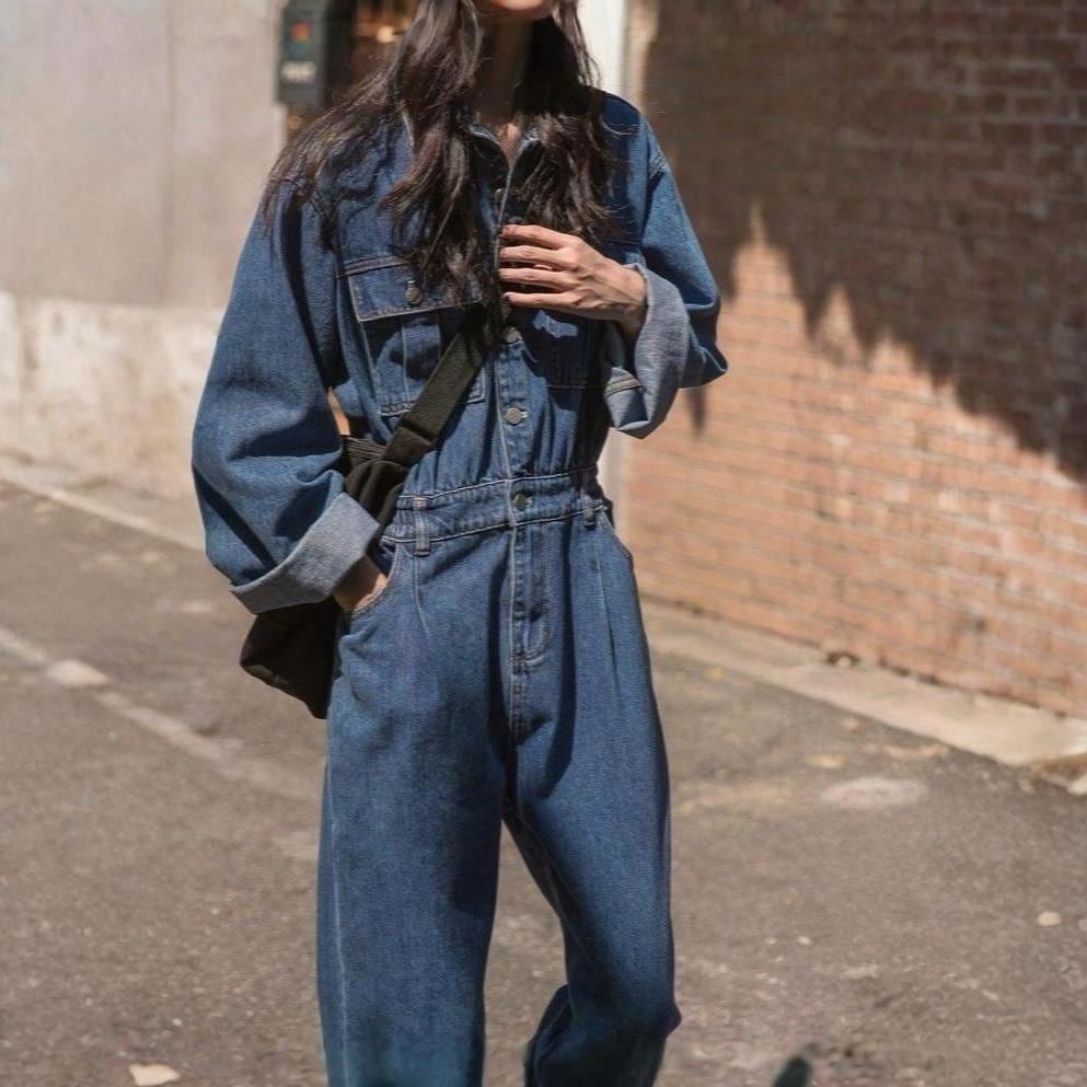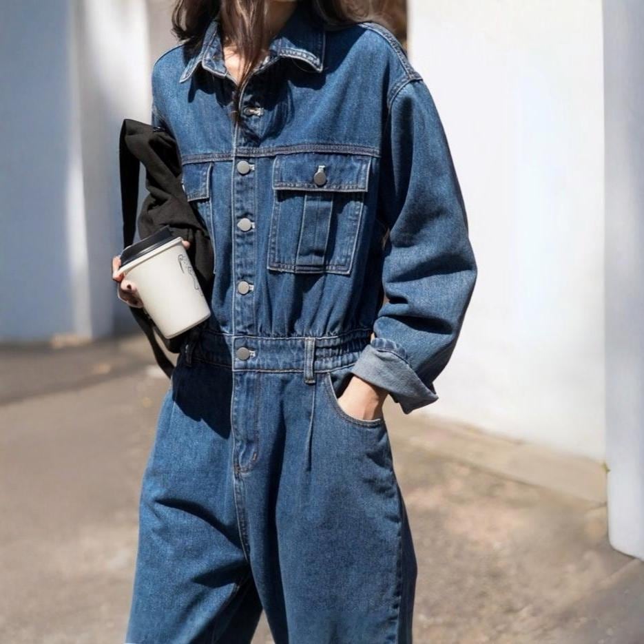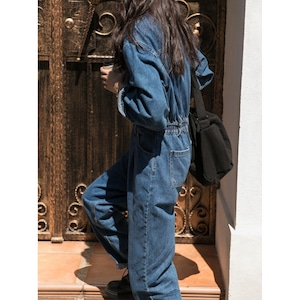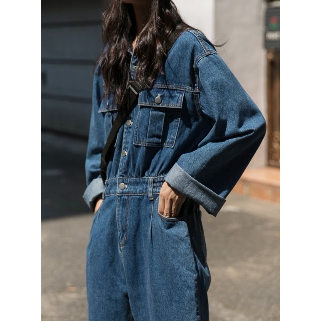 どんなスタイルにも合わせやすい、ユニセックスワークテイストデニムオールインワン。