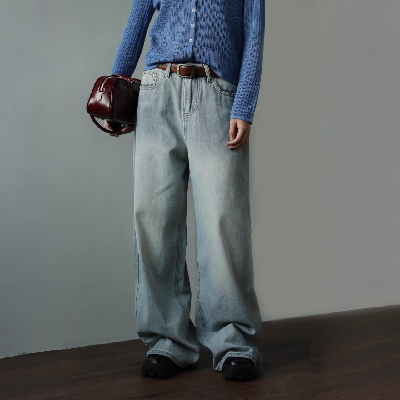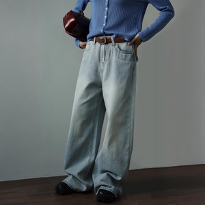 ヴィンテージライクなウォッシュ加工が魅力のワイドデニムパンツ。