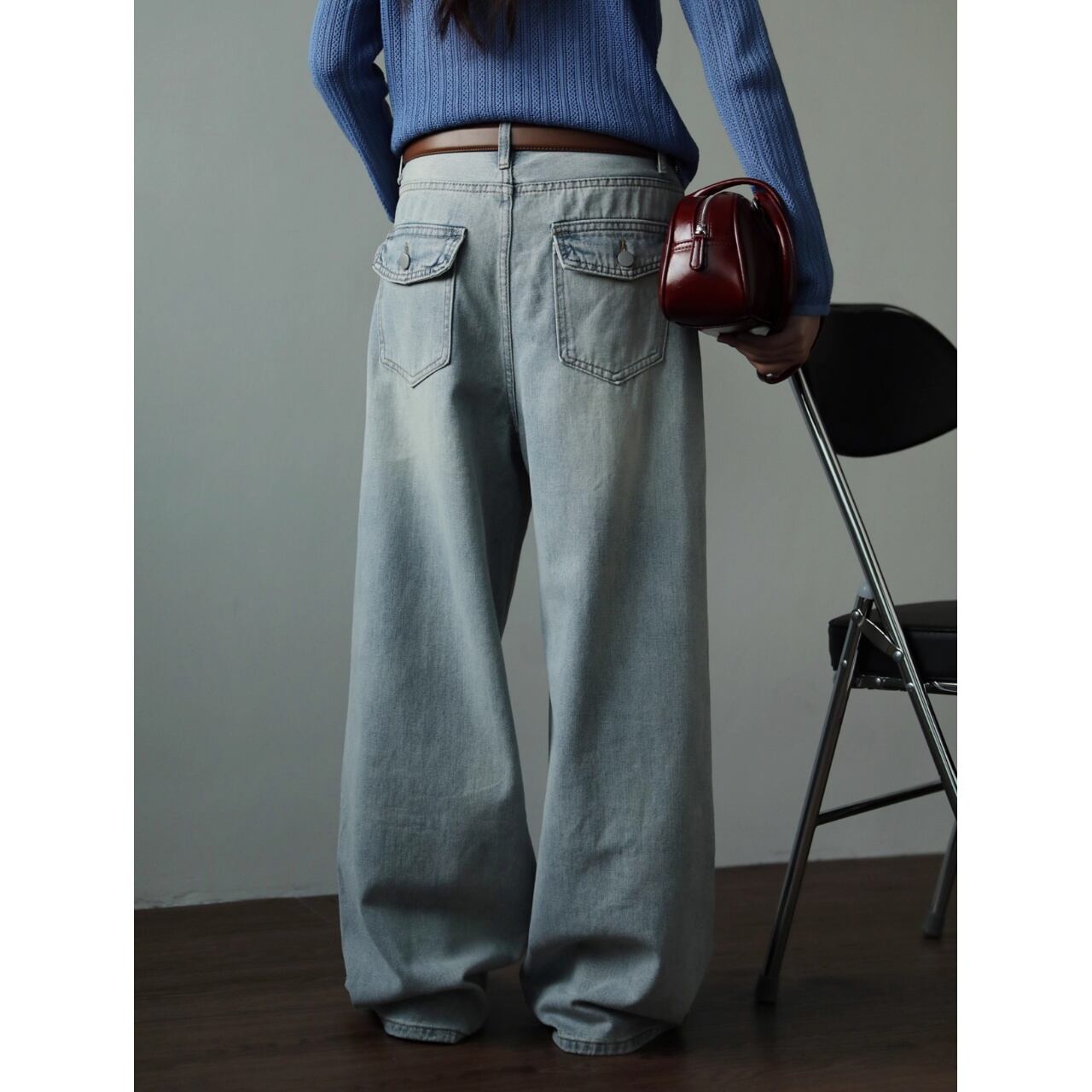 ウォッシュドバックフラップポケットワイドデニムパンツ A01721