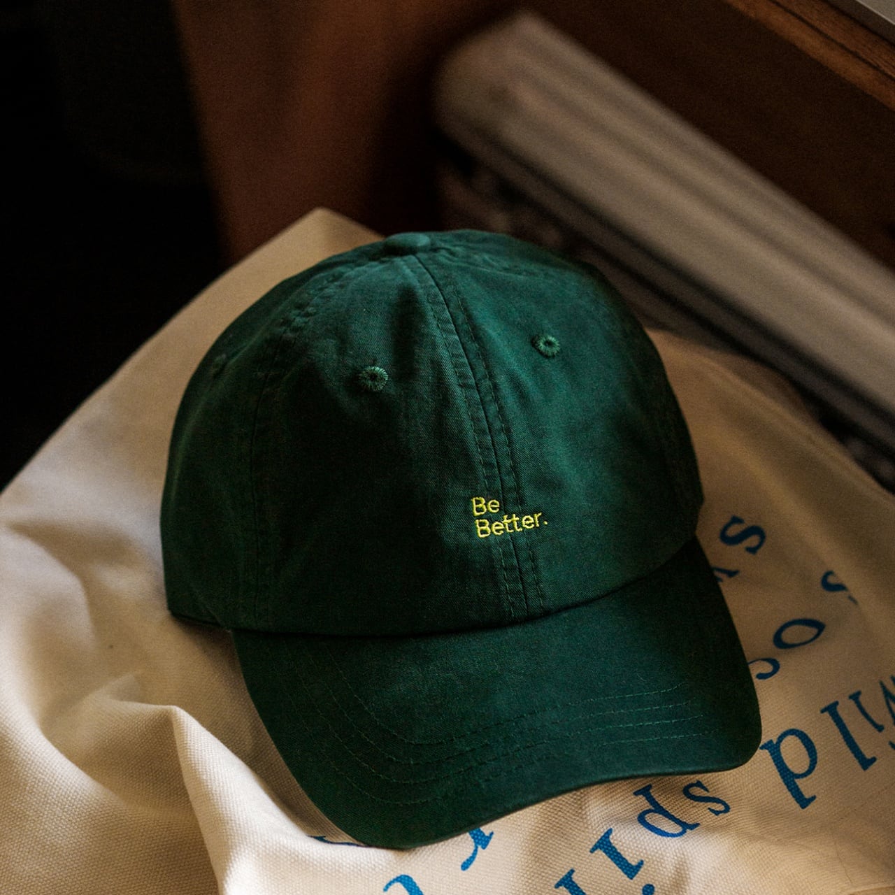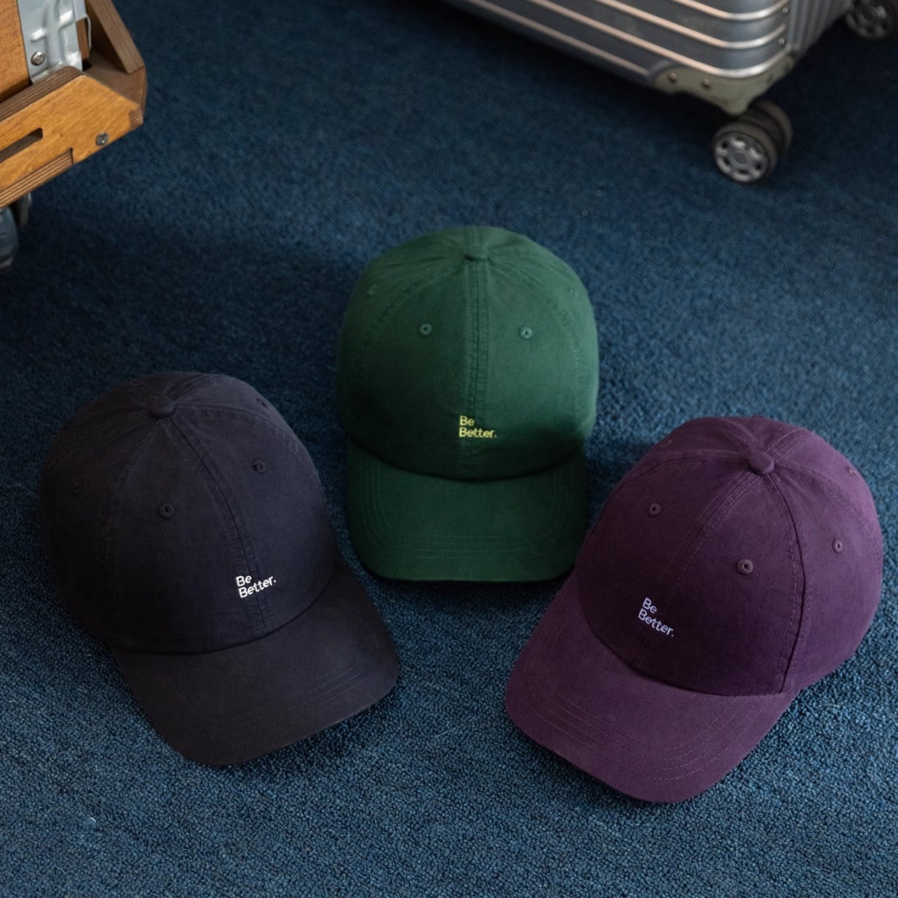 シンプルながらも「Be Better.」の刺繍がさりげないアクセントになったベースボールキャップ。