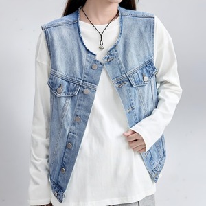 ユニセックスフリンジウォッシュデニムベスト A01741