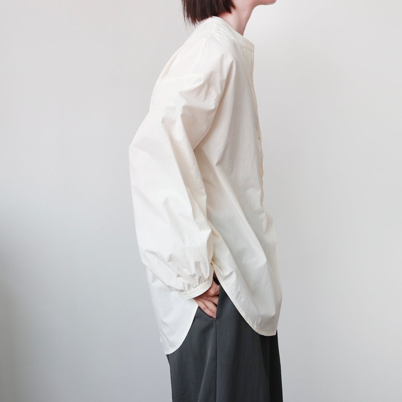 ボリュームスリーブラウンドヘムプルオーバーブラウス A01753