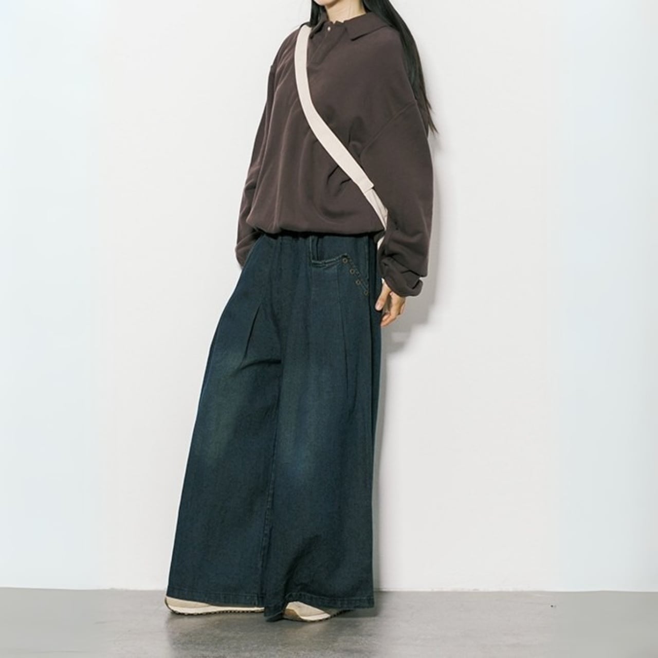 ウォッシュドデニムタックリラックスワイドパンツ A01758