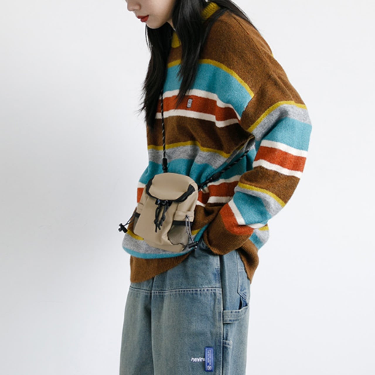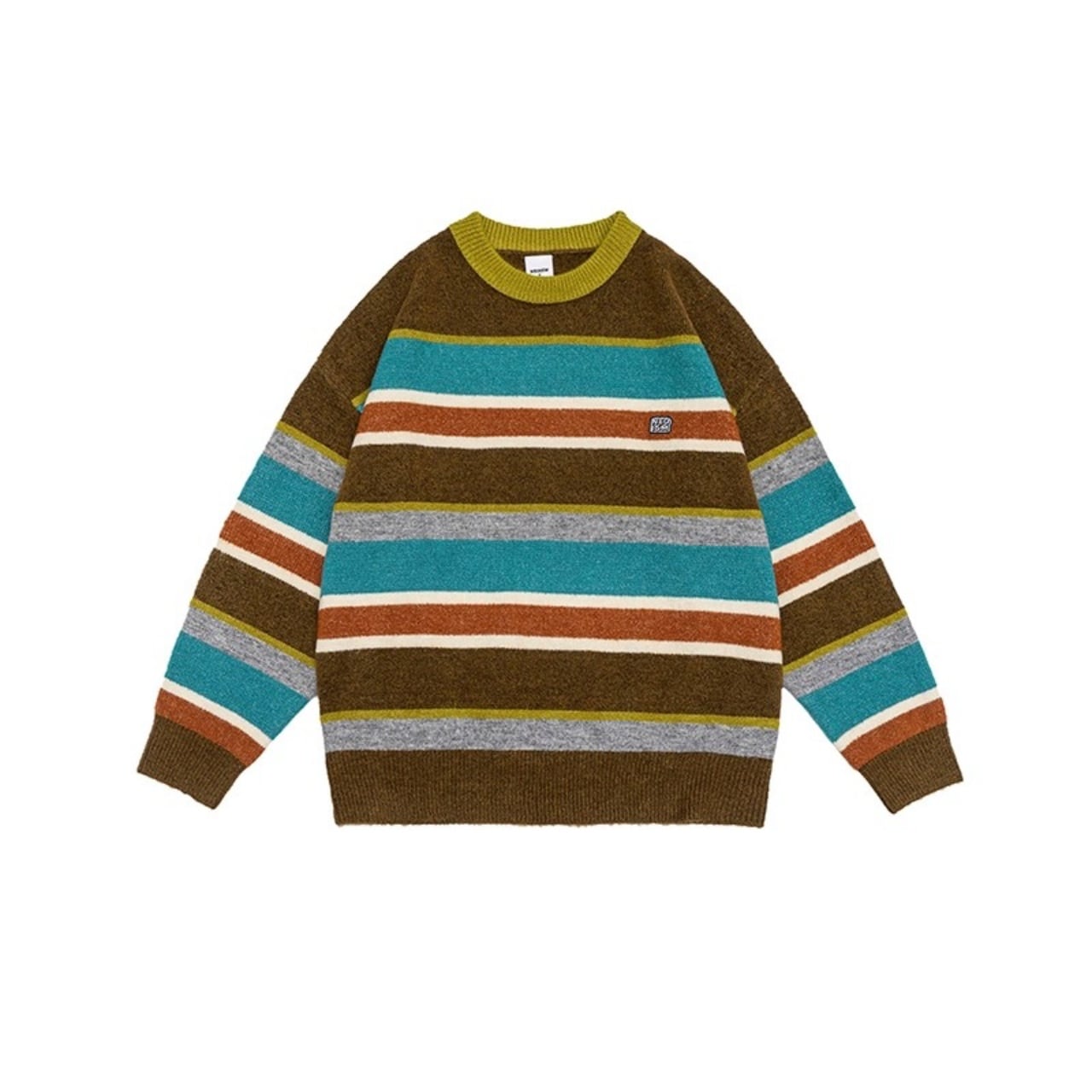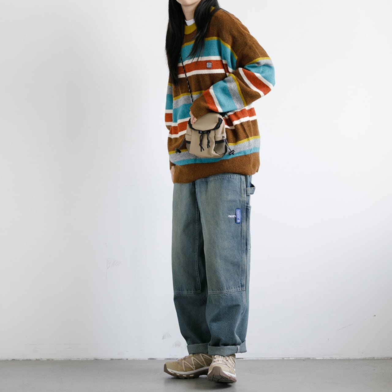 マルチボーダーワンポイントロゴオーバーサイズニット A01764