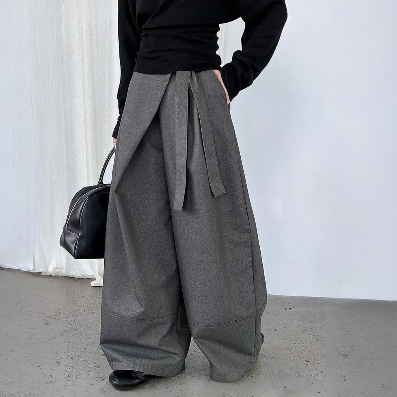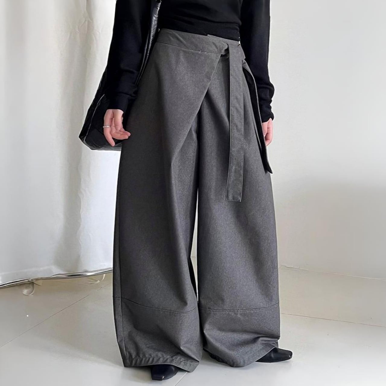 アシンメトリーなラップデザインが、着こなしに遊び心をプラス。
