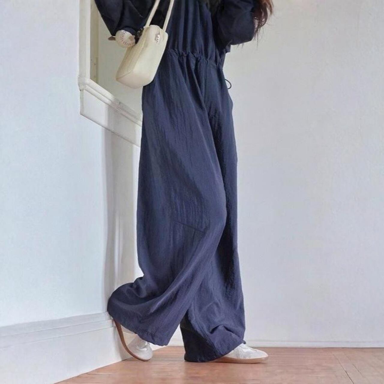 ウエストのギャザーとドローストリングで、自分好みのフィット感に調整可能。