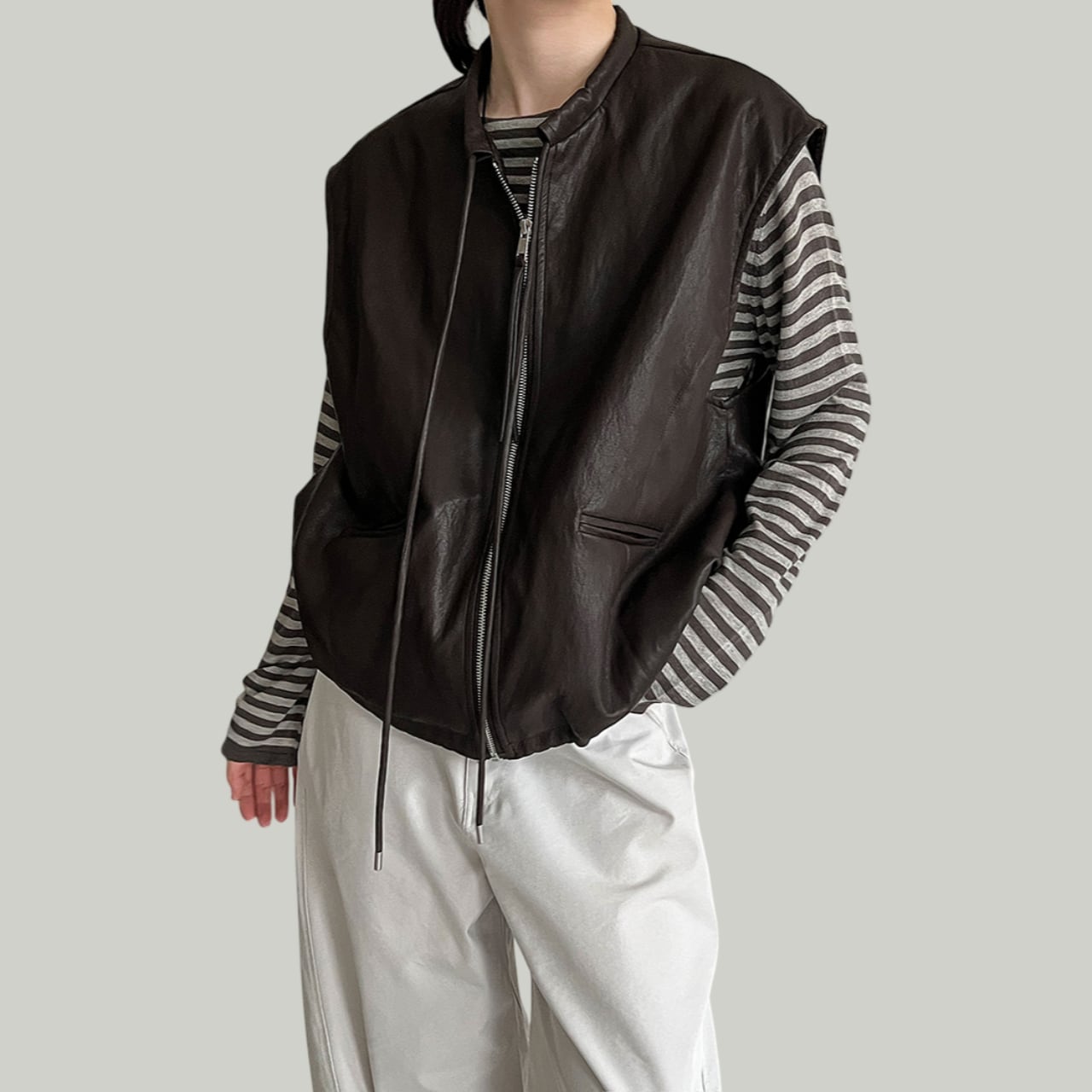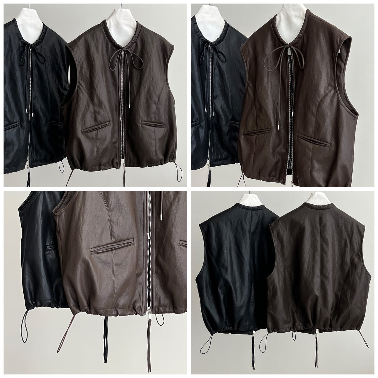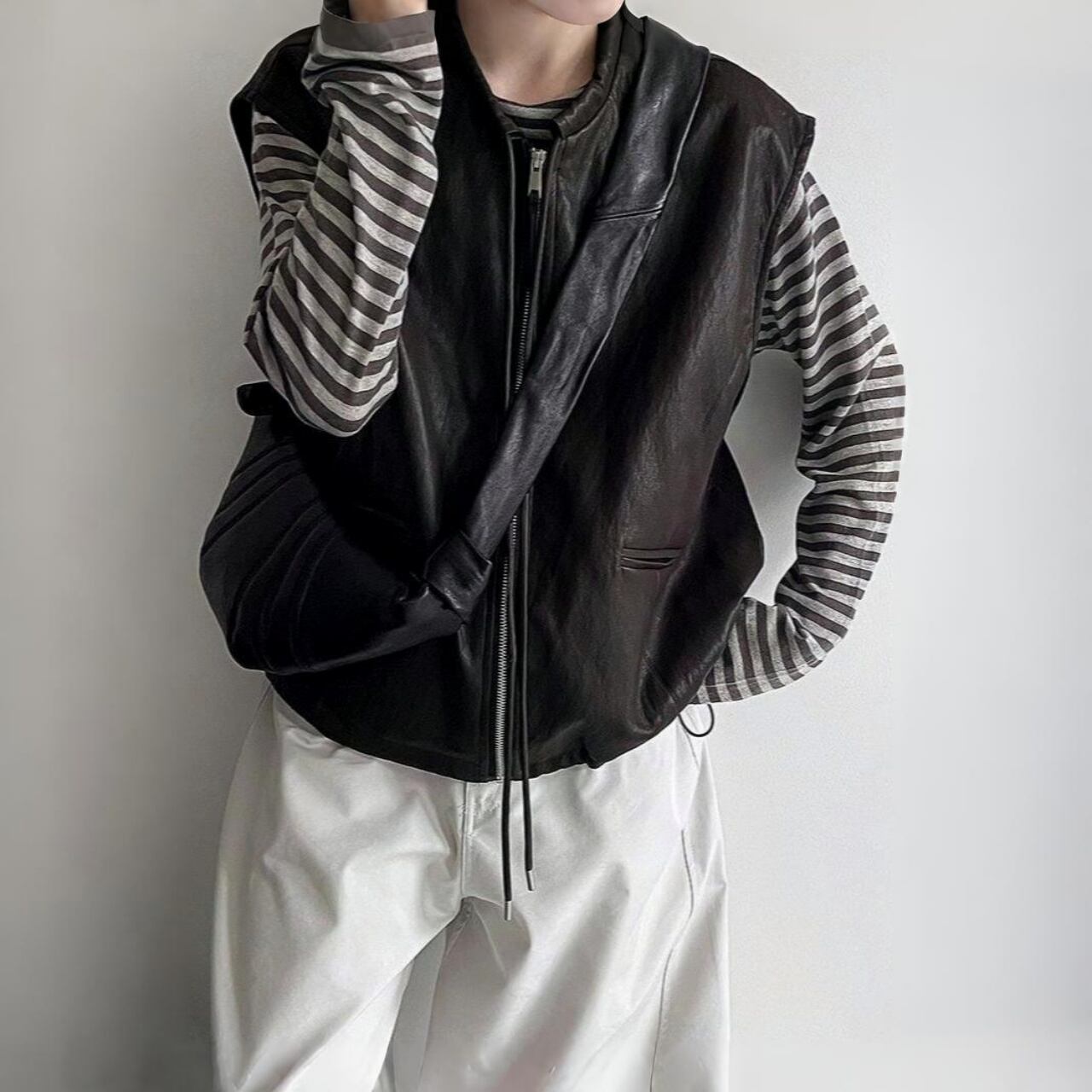 シャツやニットの上に重ねるだけで決まる、レザーライクベスト。
