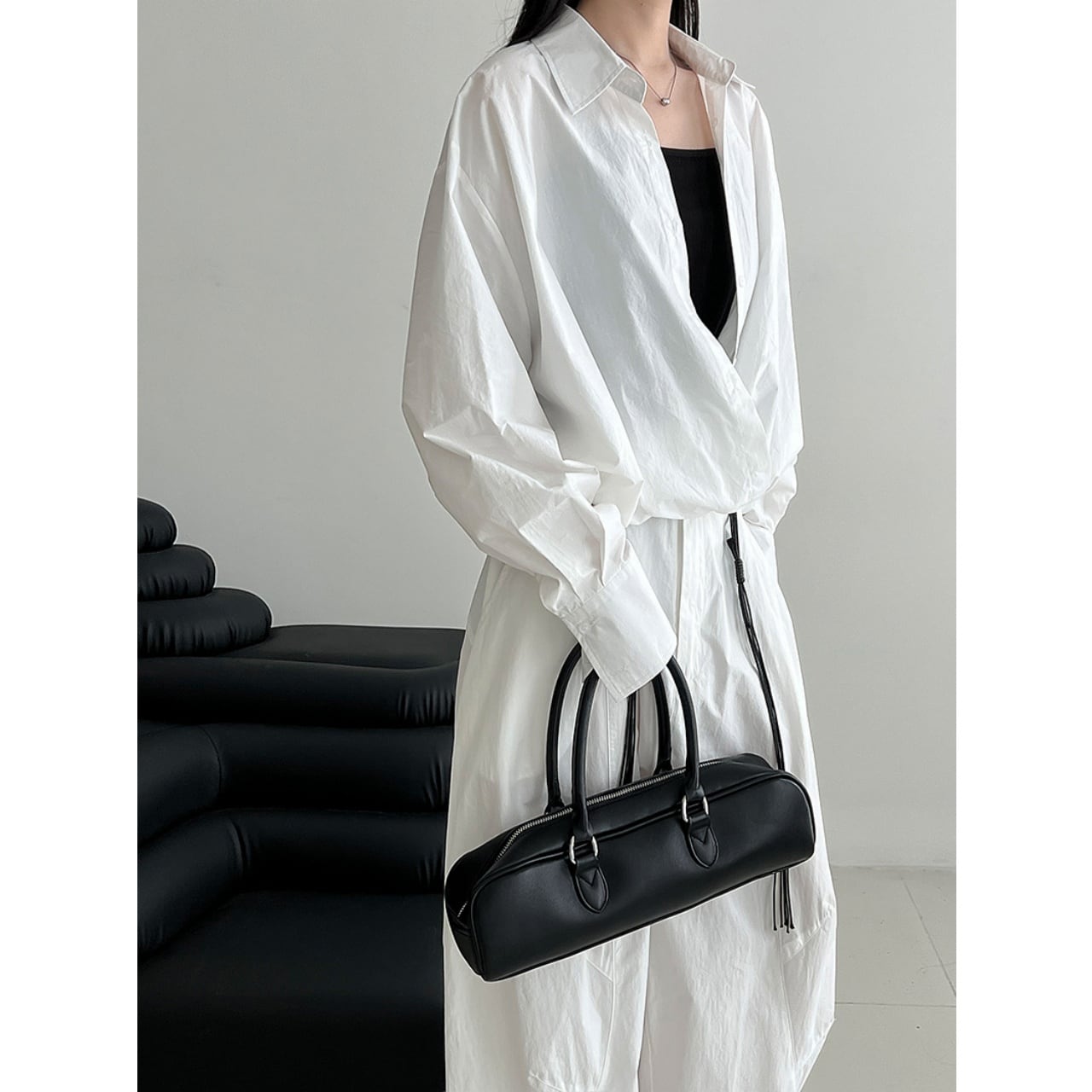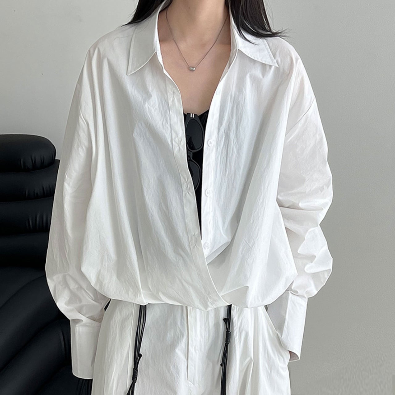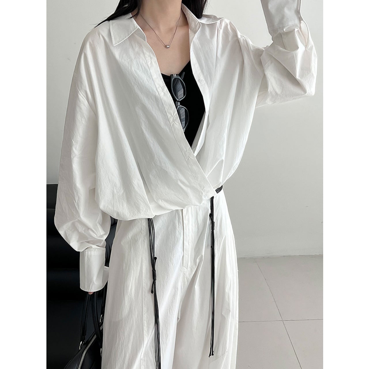 クロスフロントドレープエラスティックヘムシャツ A01808