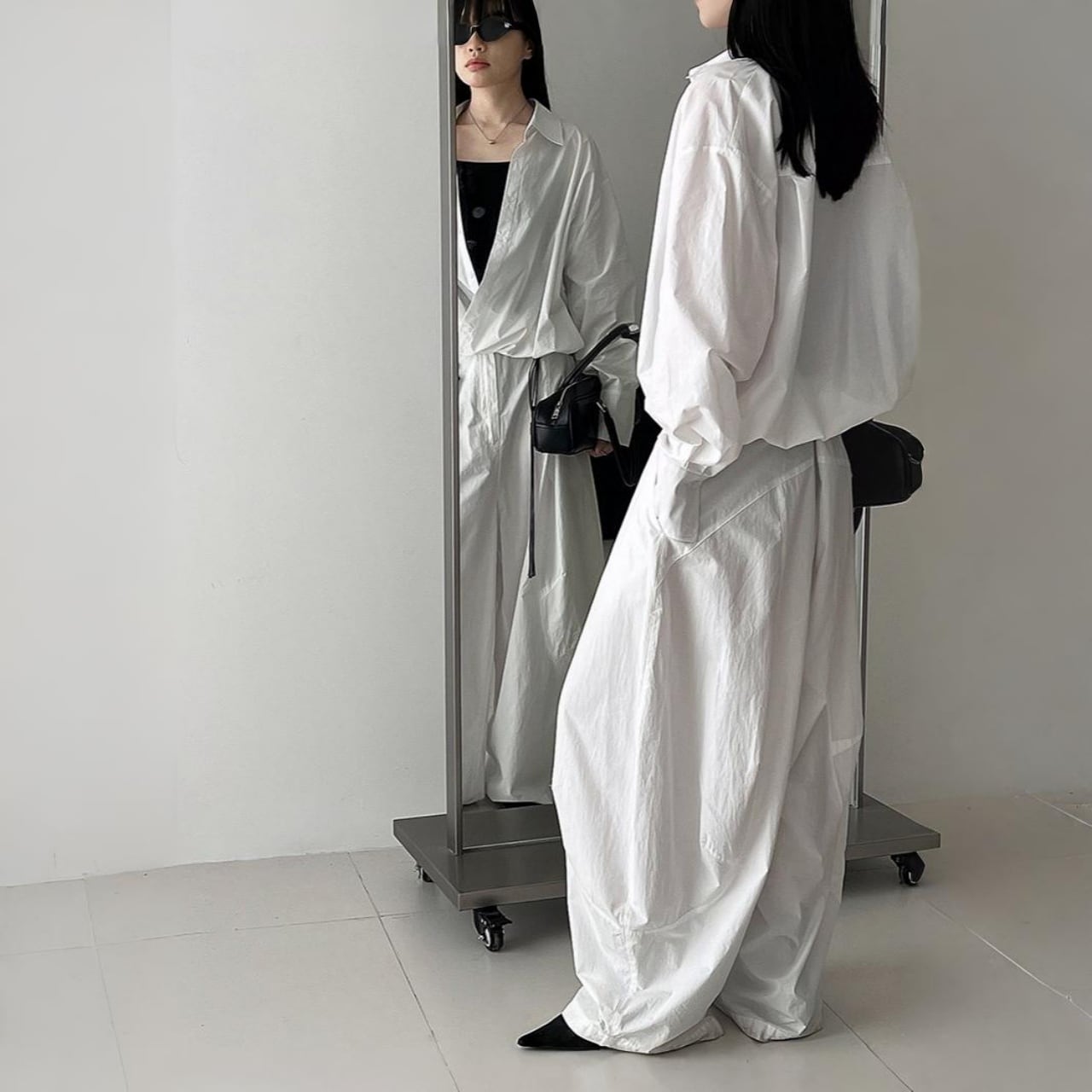 ウエストのゴムで裾がきれいにまとまり、スタイルアップも叶います。
