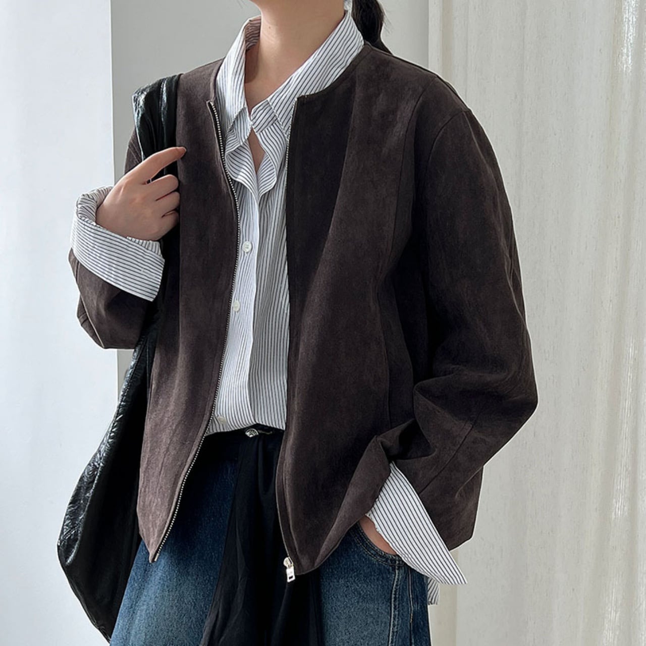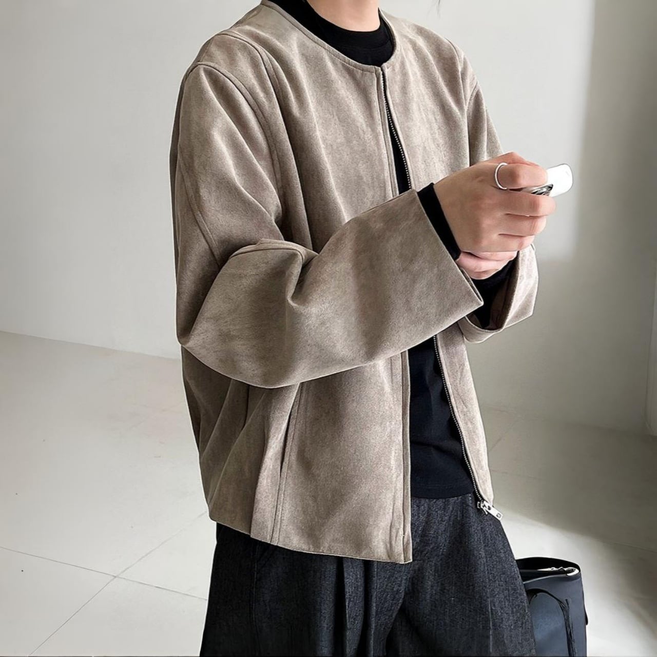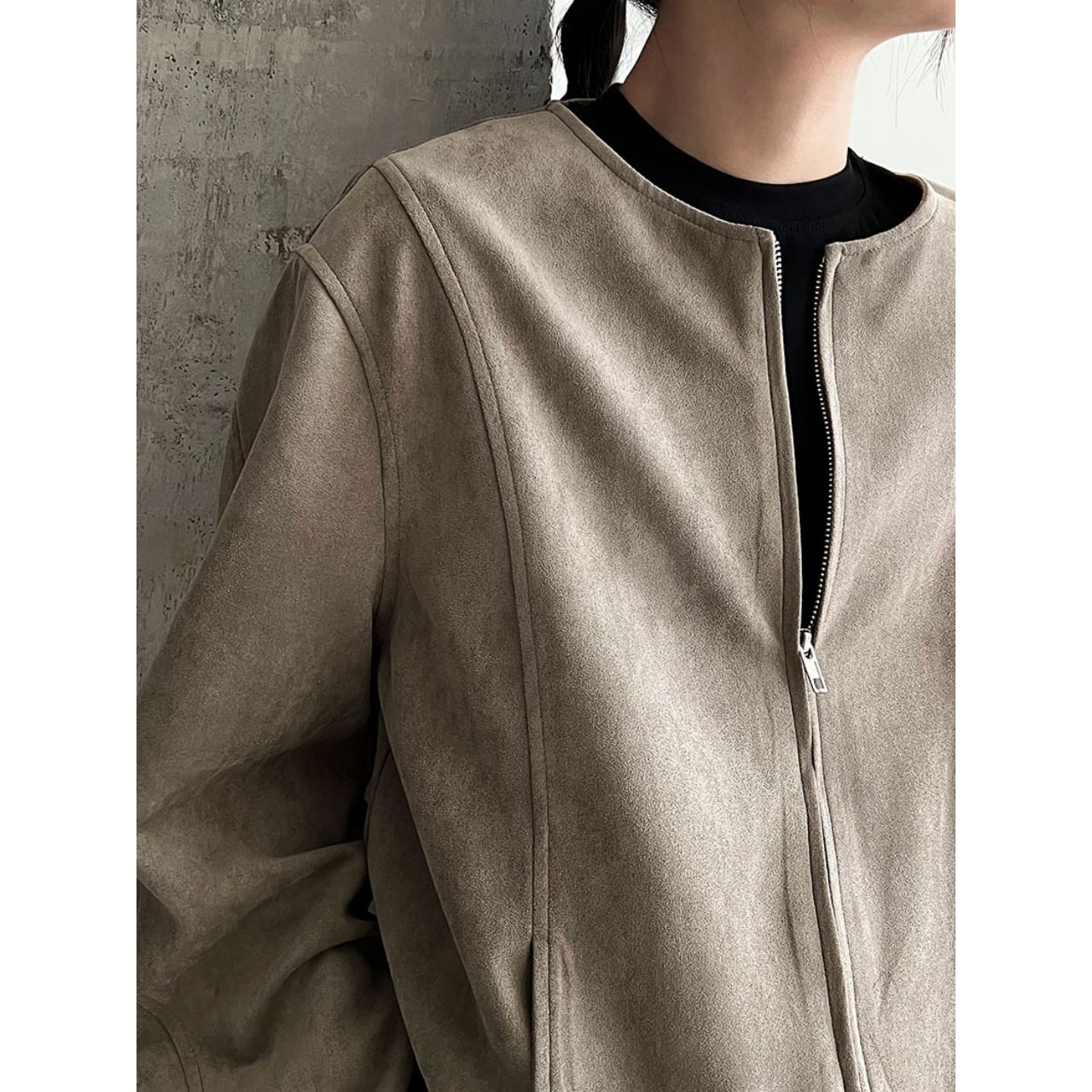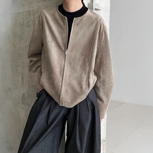季節のムードを高めるスエードライクのジップアップジャケット。