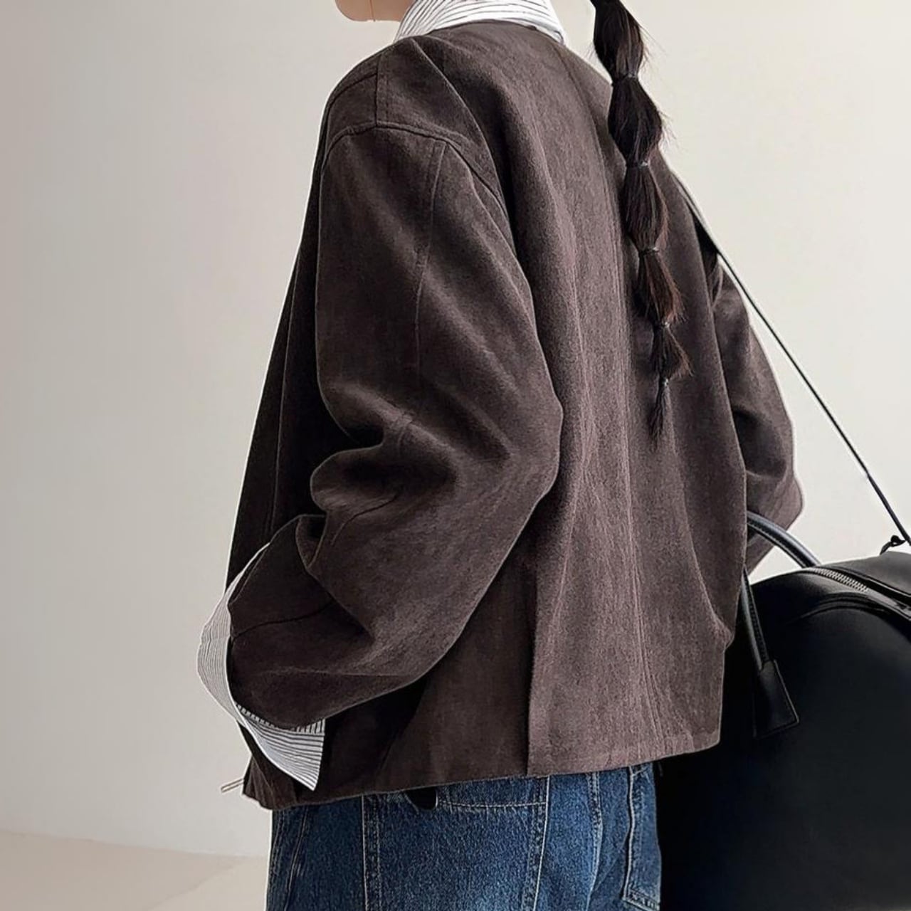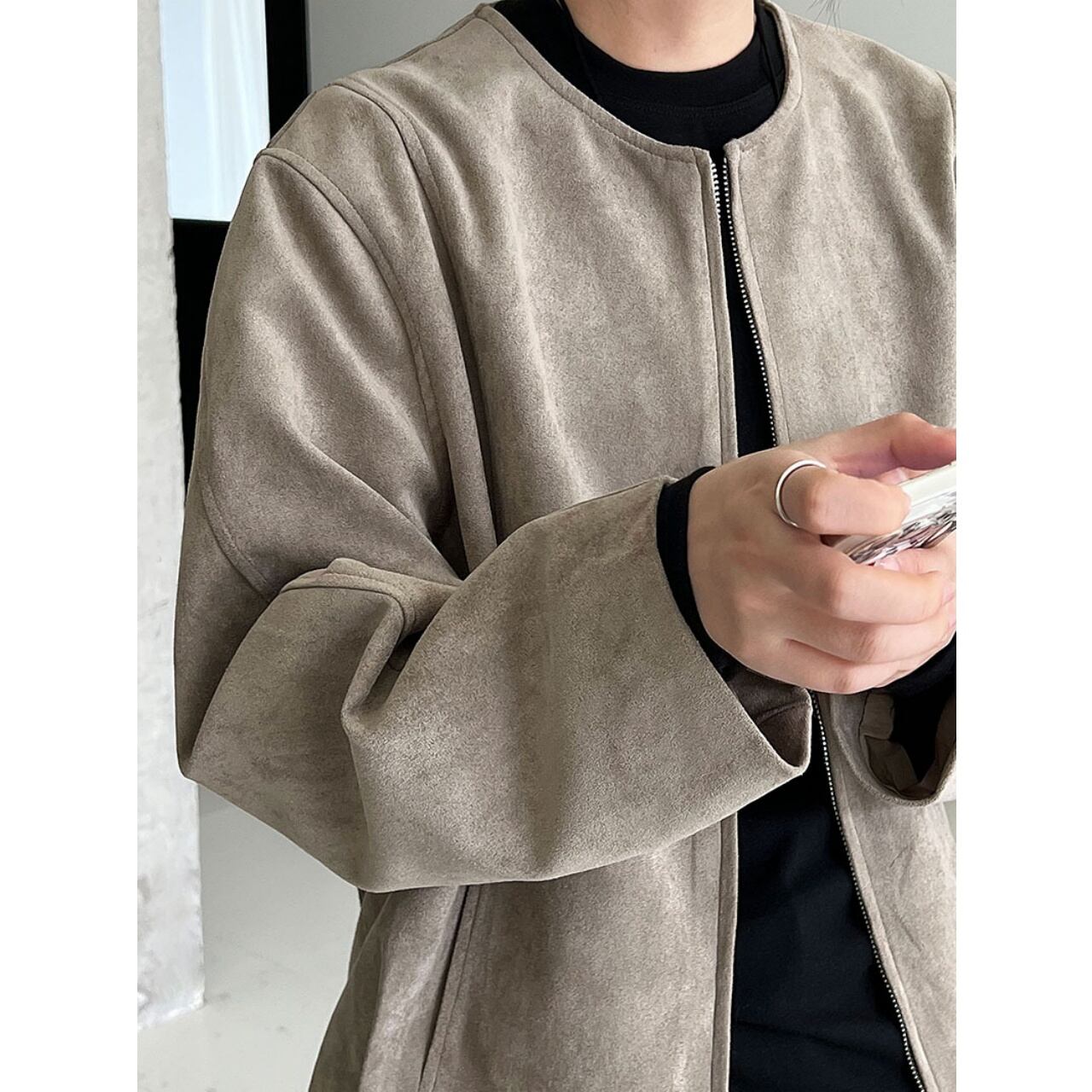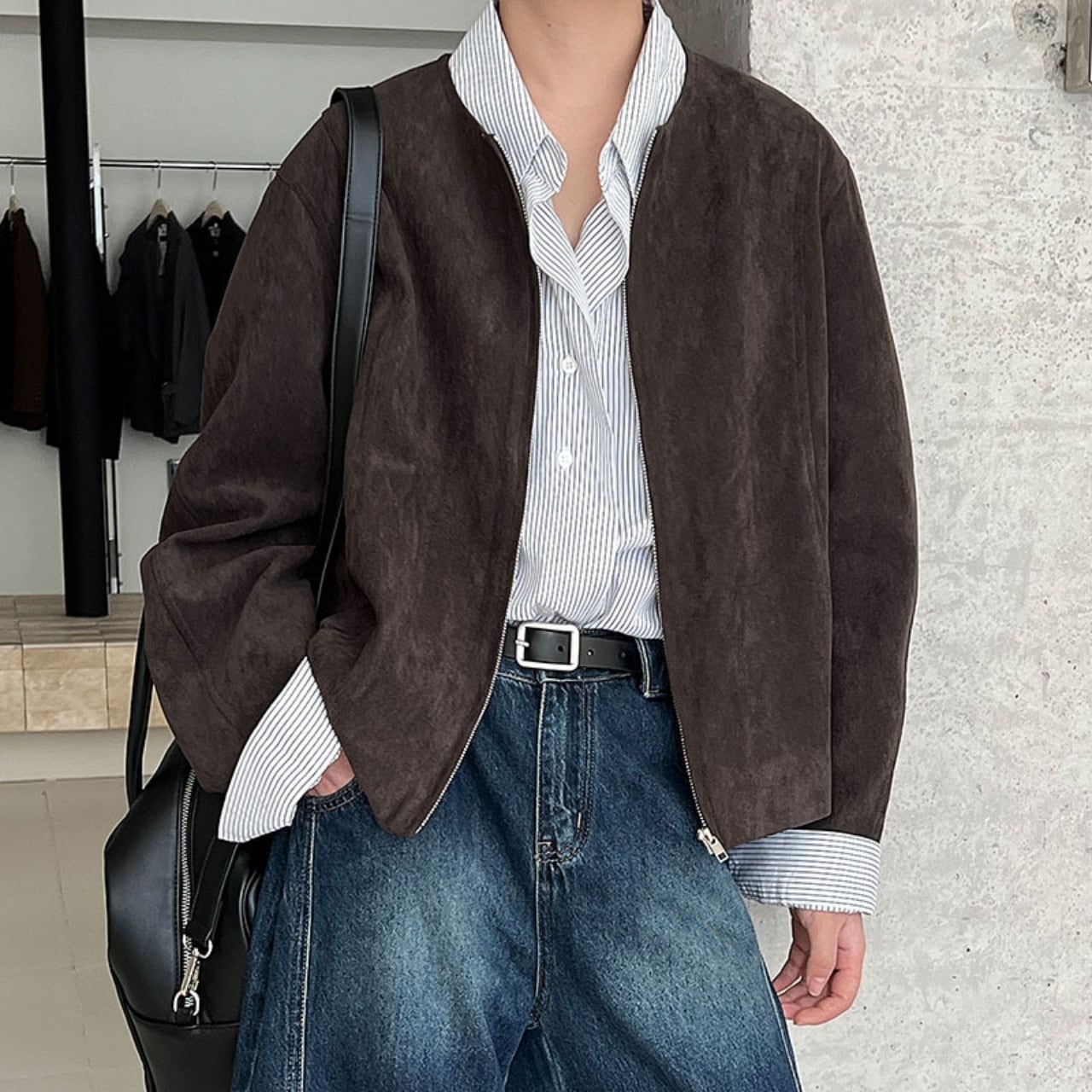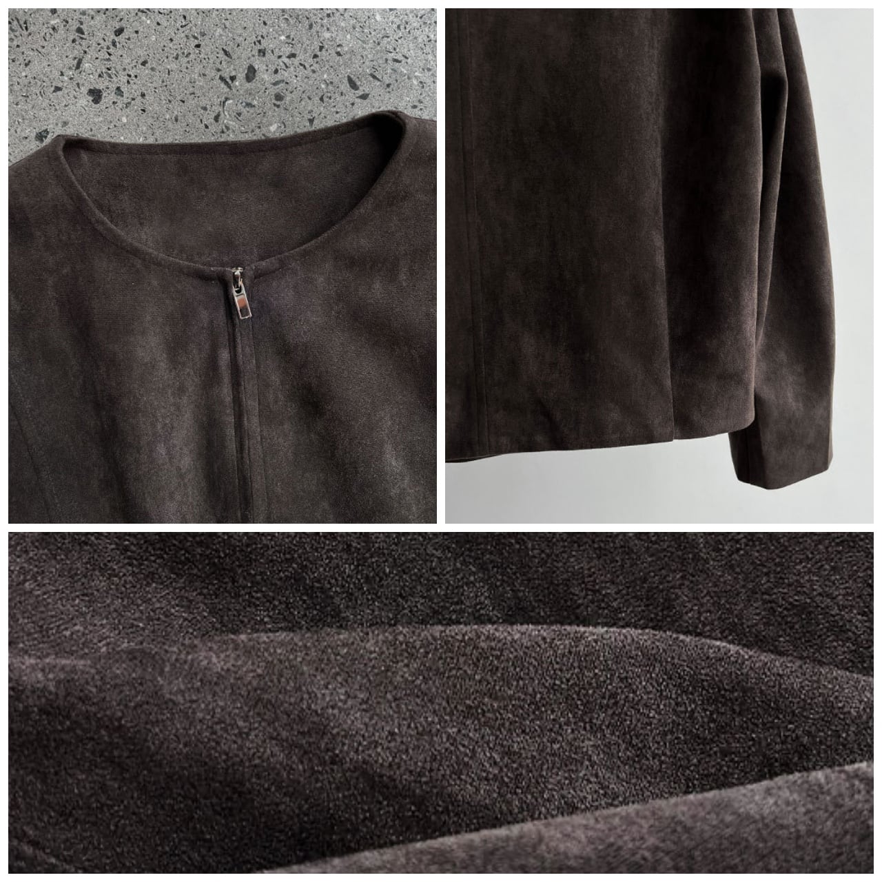 季節のムードを高めるスエードライクのジップアップジャケット。